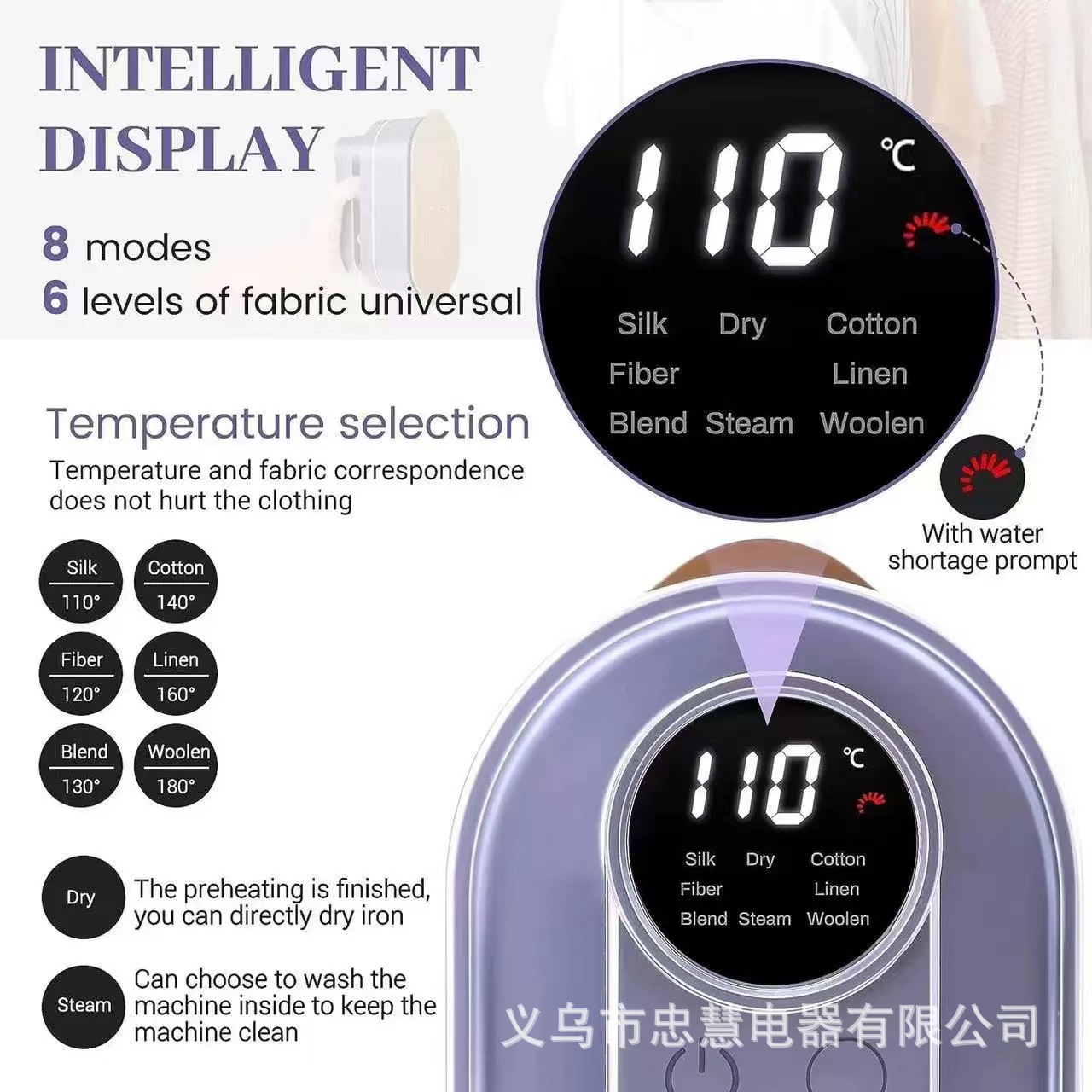 8단 디지털 디스플레이 휴대용 다림질 가정용 소형 의류 다림질 기계 스팀 전기 다리미 휴대용 의류 다림질 도구 크로스보더스토어 가기