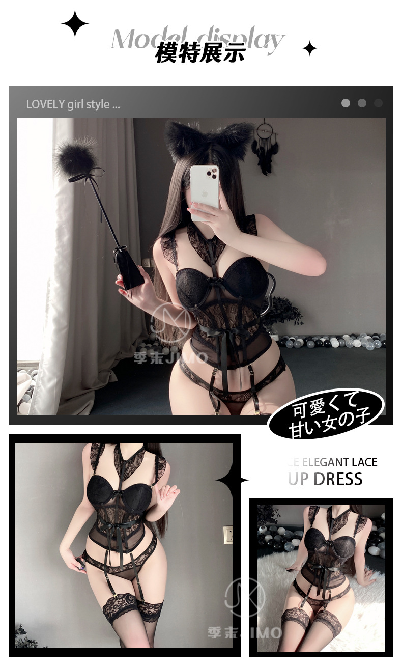 • 검정 조끼 [가슴 패드 스틸 가터 + 속옷 등] + 스타킹