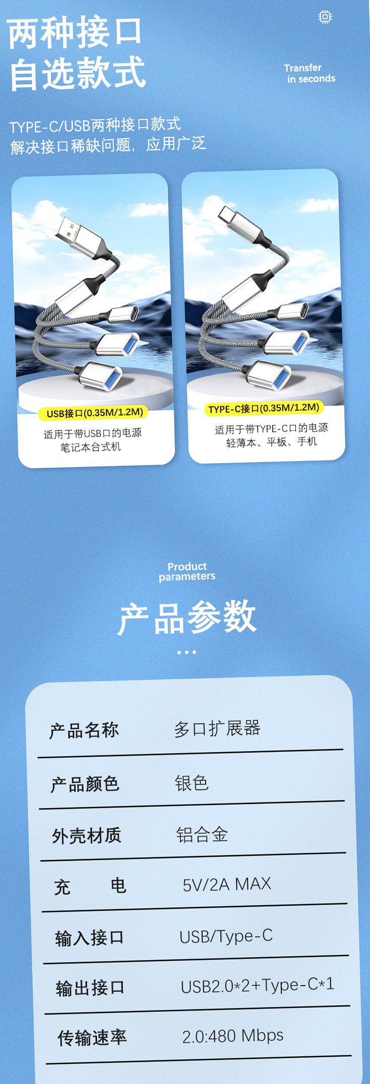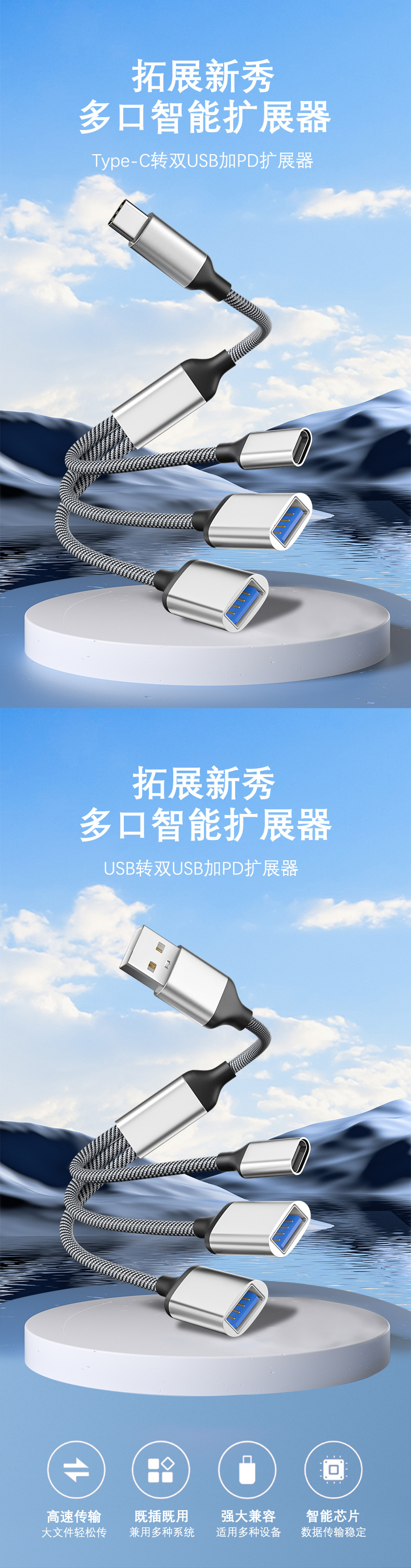 Typec 스마트 멀티 포트 익스텐더 휴대 전화 태블릿 컴퓨터 U 디스크 스플리터 PD60W 고속 충전 익스텐더에 적합스토어 가기
