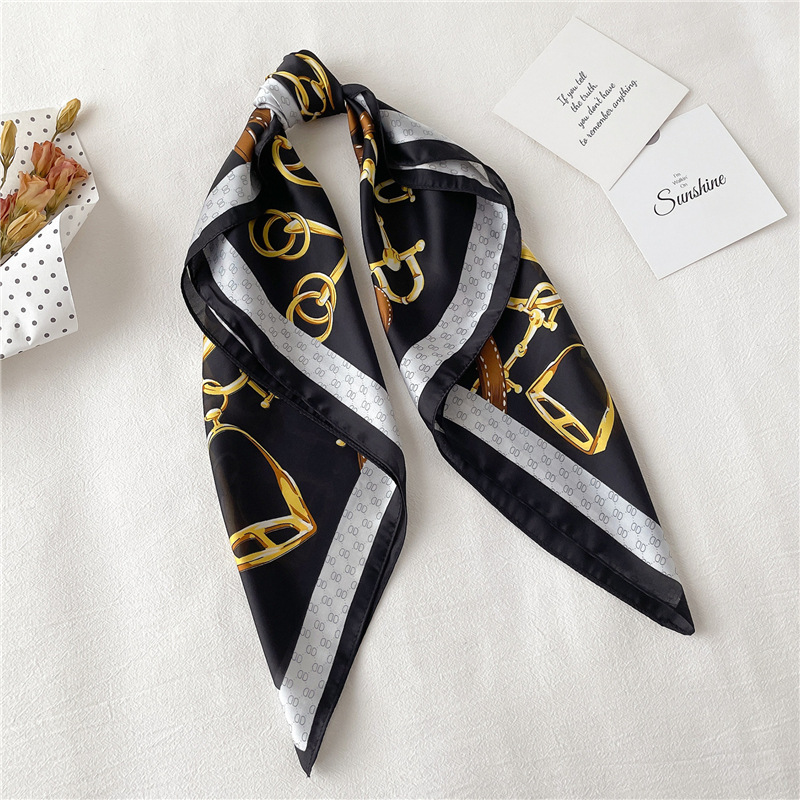 작은 샤넬 스타일 체인 패션 실크 스카프 여성의 70cm 스퀘어 스카프 편지 색상 일치하는 유럽과 미국 스타일 디자이너 스카프 모조 실크