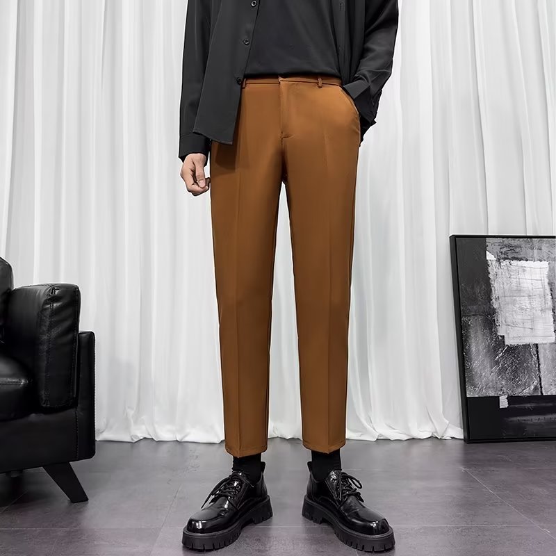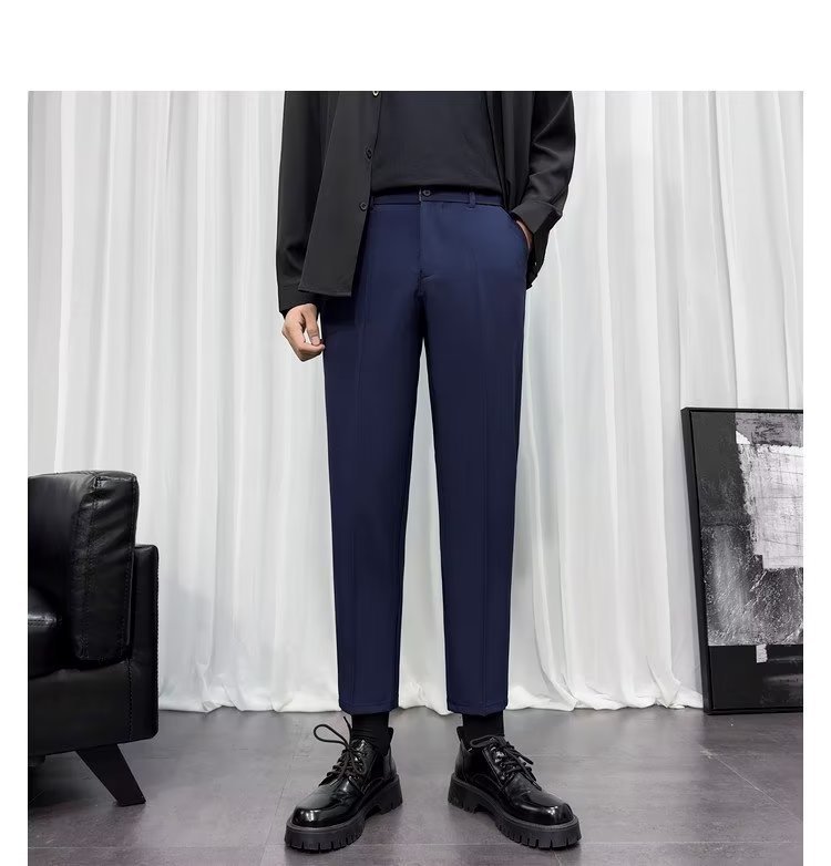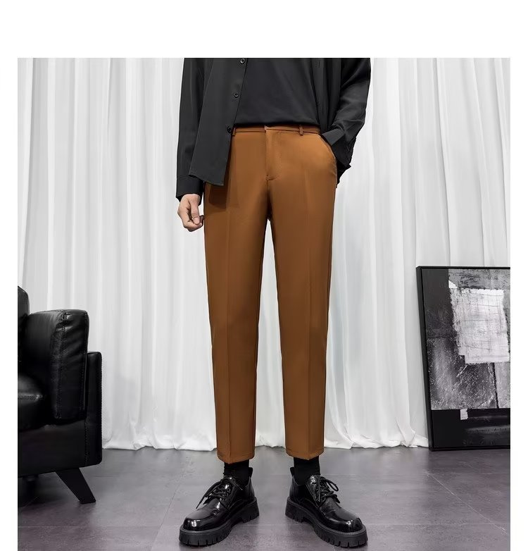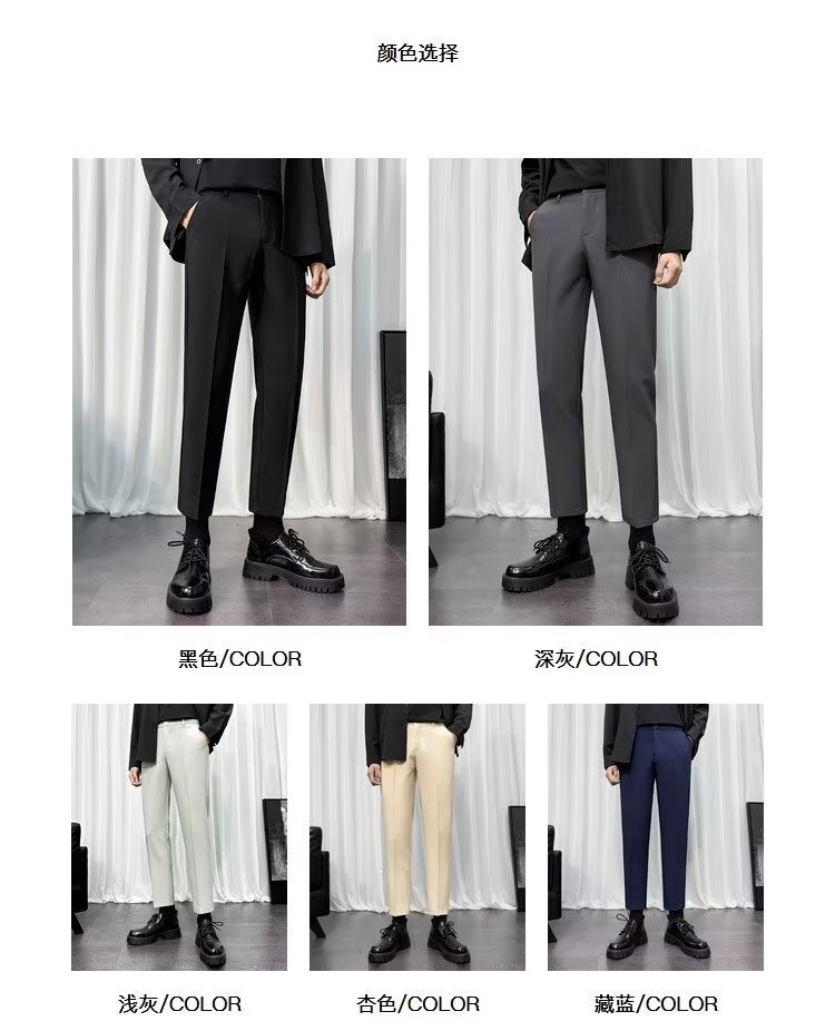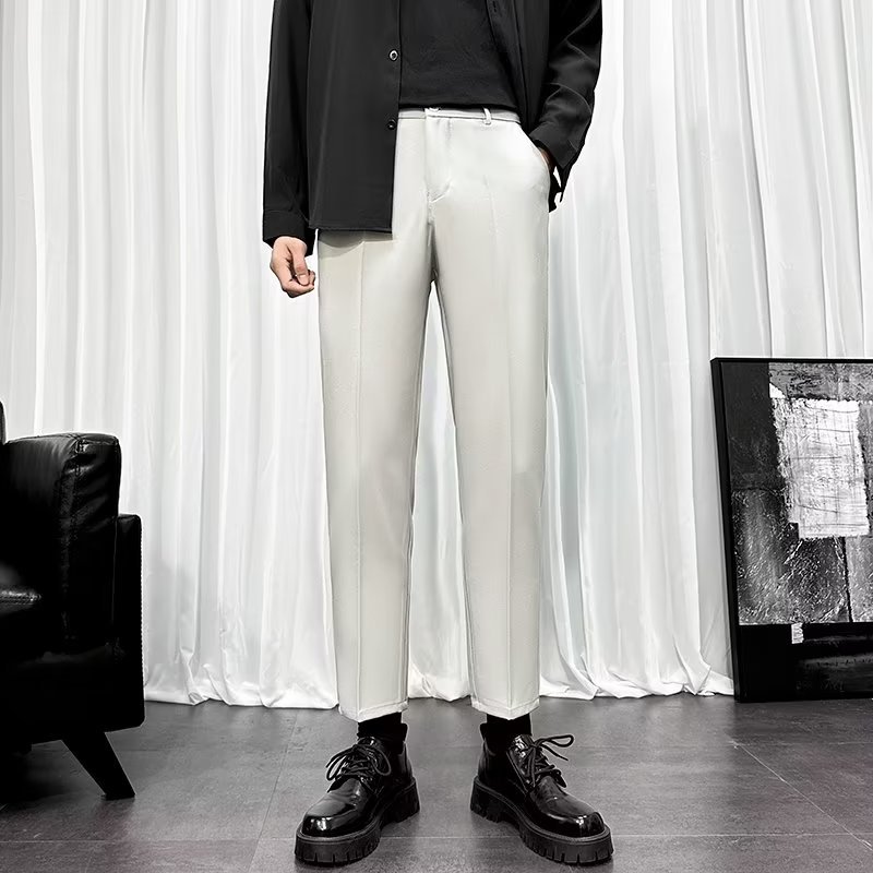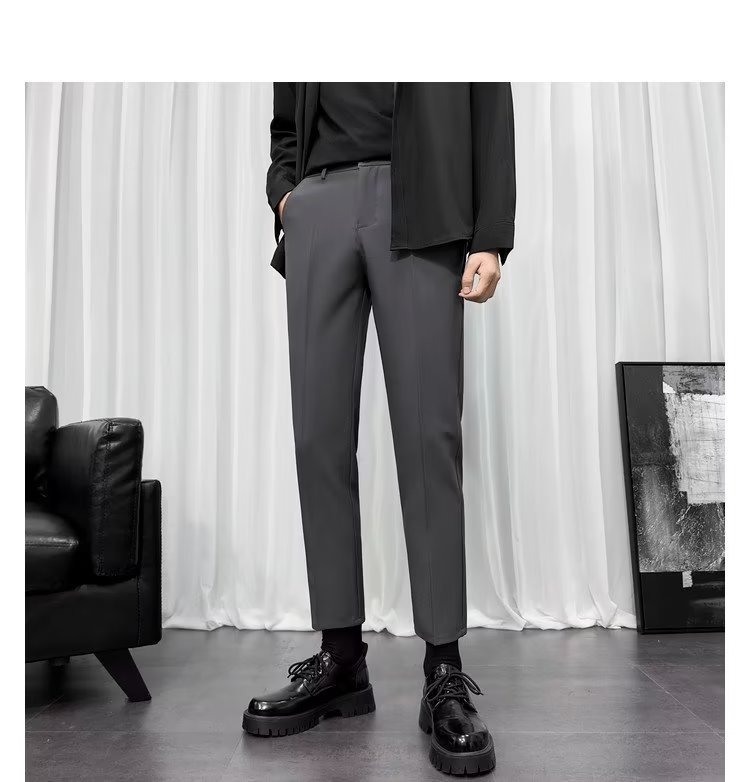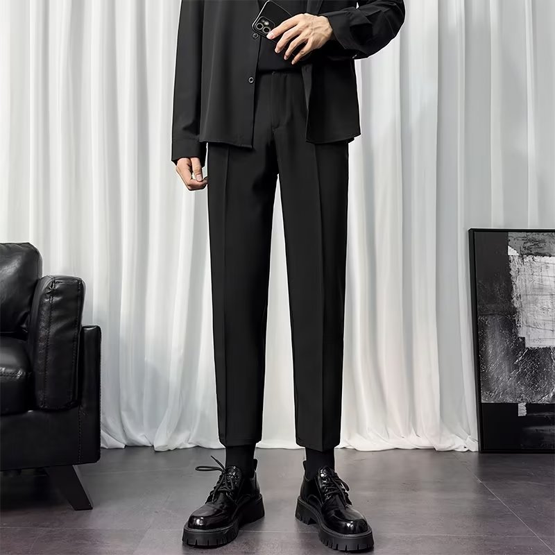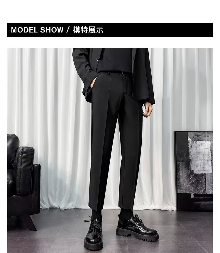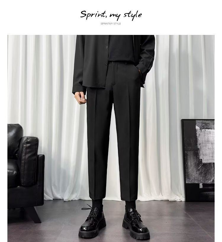 바지 남성 크롭 작은 세트 바지 한국식 트렌디 스트레이트 슬림 핏 다림질 캐주얼 바지 세트 바지 남성 봄과 가을