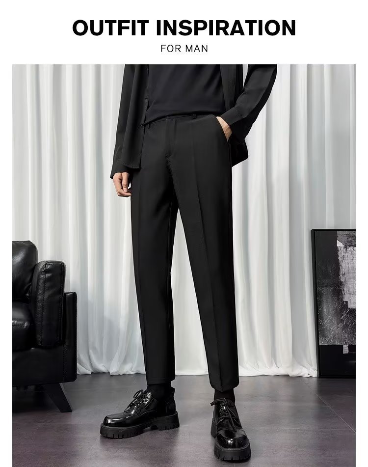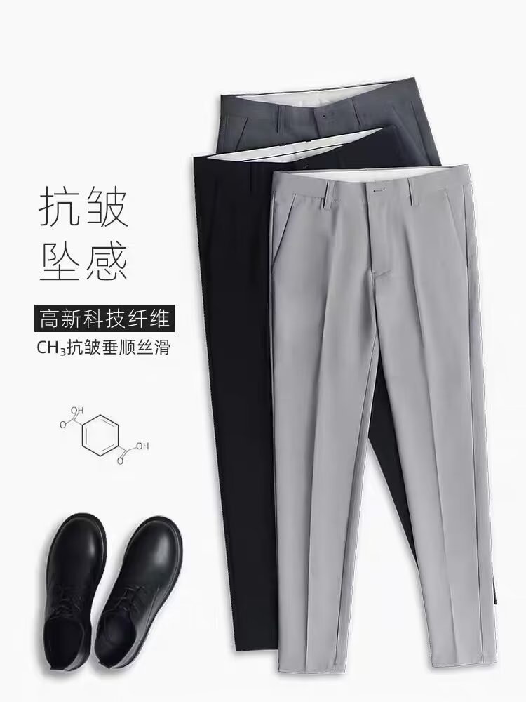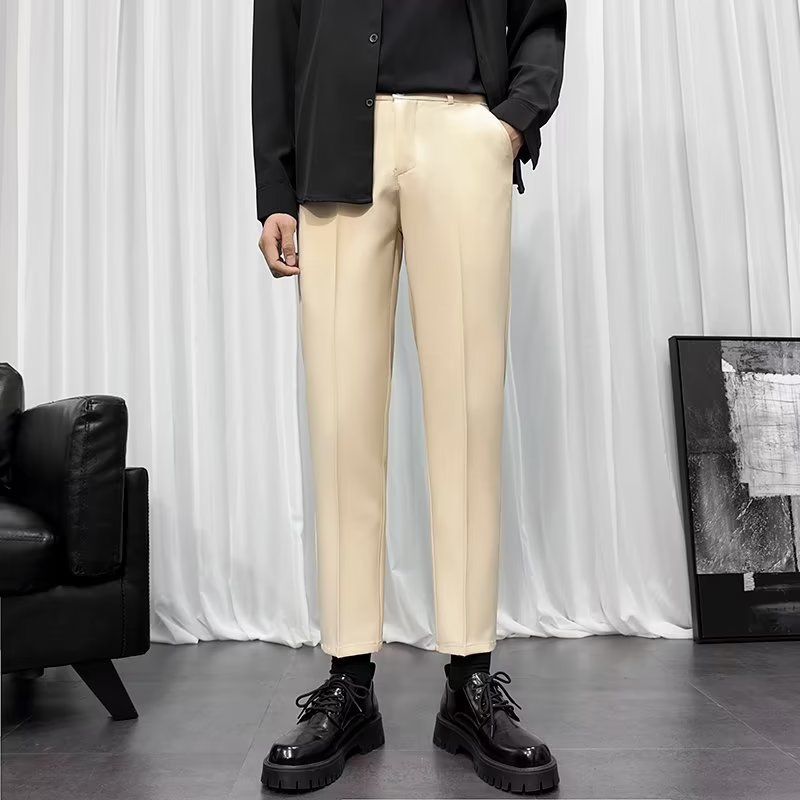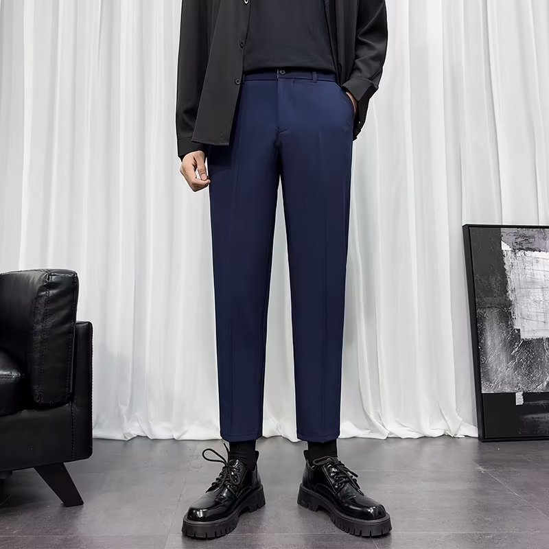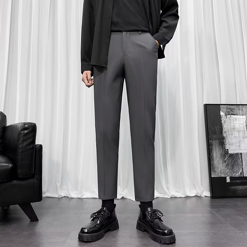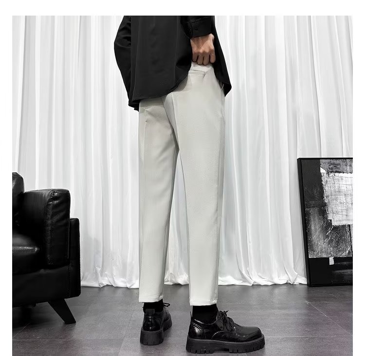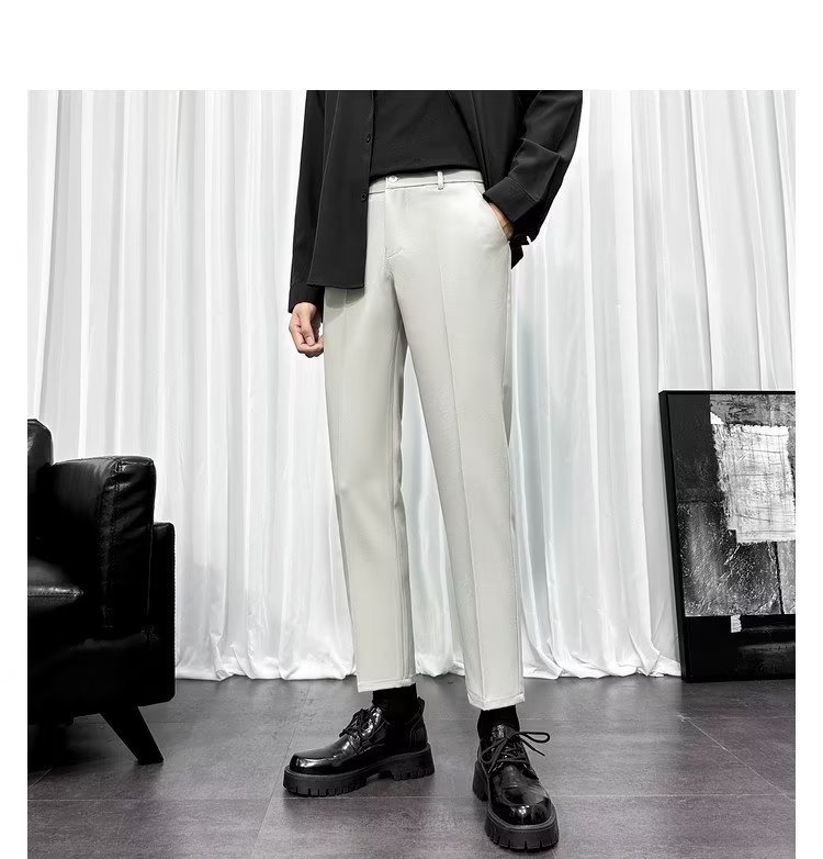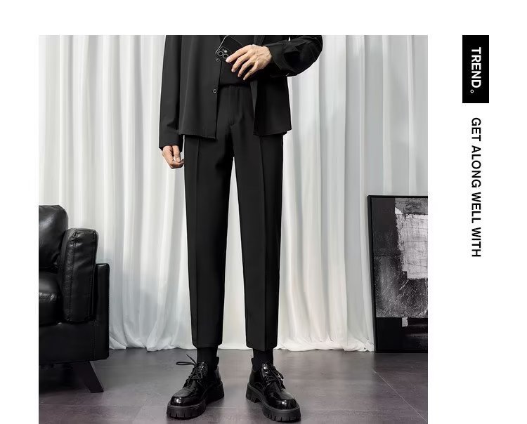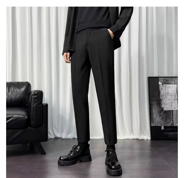 바지 남성 크롭 작은 세트 바지 한국식 트렌디 스트레이트 슬림 핏 다림질 캐주얼 바지 세트 바지 남성 봄과 가을