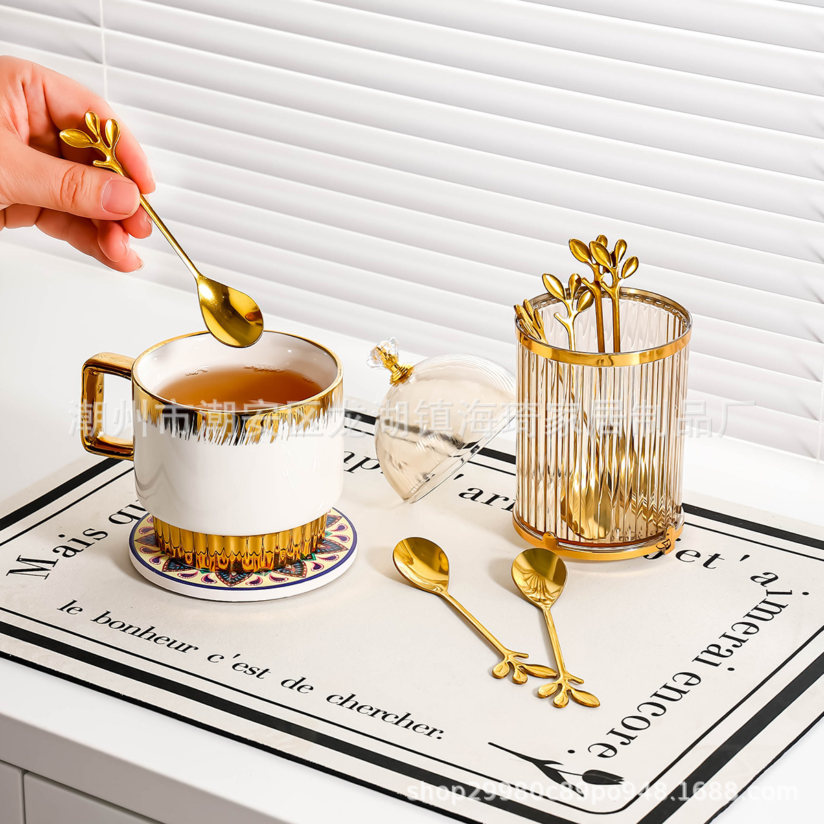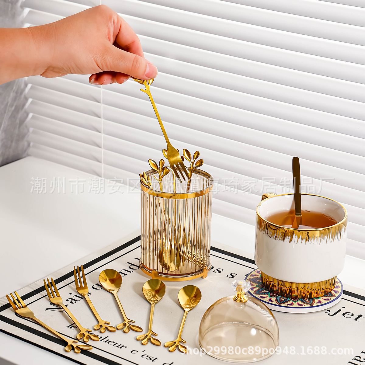 항아리와 가정용 세트 스테인레스 스틸 케이크 포크 작은 접시 가벼운 고급 식기 고급 과일 포크 보관 상자스토어 가기