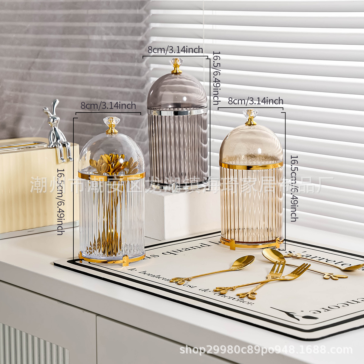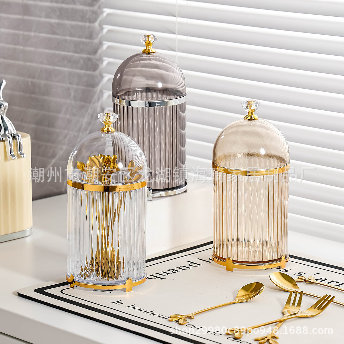 • SA02 투명 컬러 골드 라운드 스트라이프 과일 포크 실린더