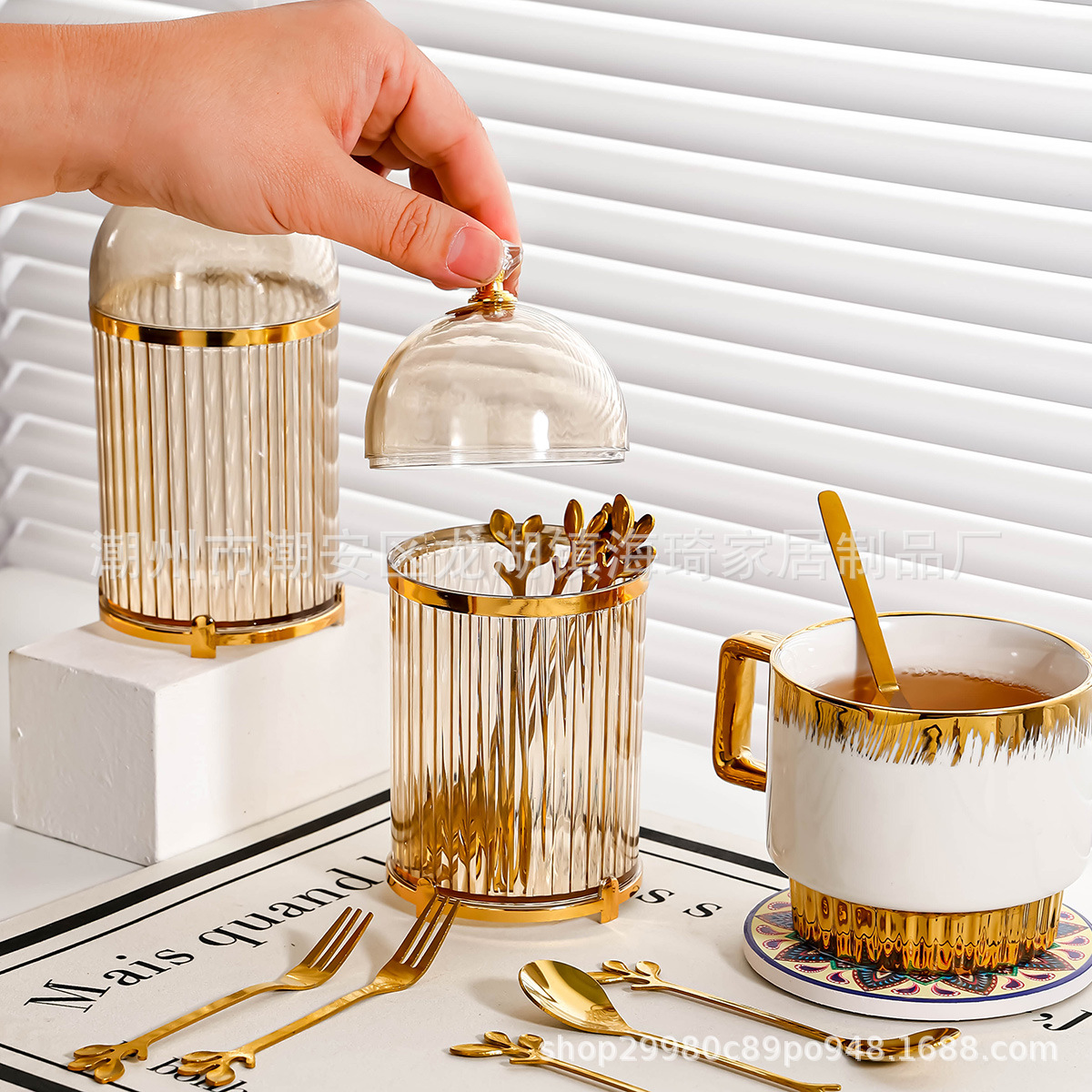 • SA02 연기 그레이 골드 라운드 스트라이프 과일 포크 실린더