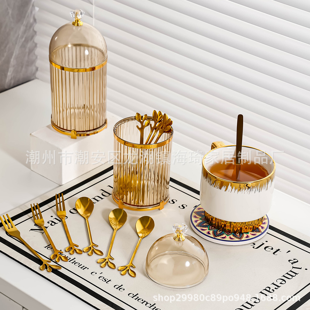 항아리와 가정용 세트 스테인레스 스틸 케이크 포크 작은 접시 가벼운 고급 식기 고급 과일 포크 보관 상자