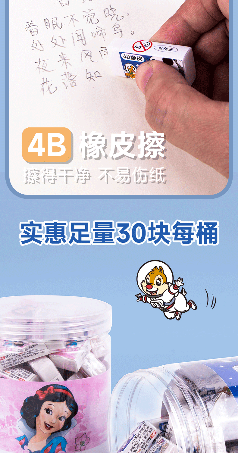 초등학교 시험을위한 디즈니 4B 지우개 어린이 흠집 없음 마크 없음 연필 지우개 아트 스케치 지우기 쉬운스토어 가기