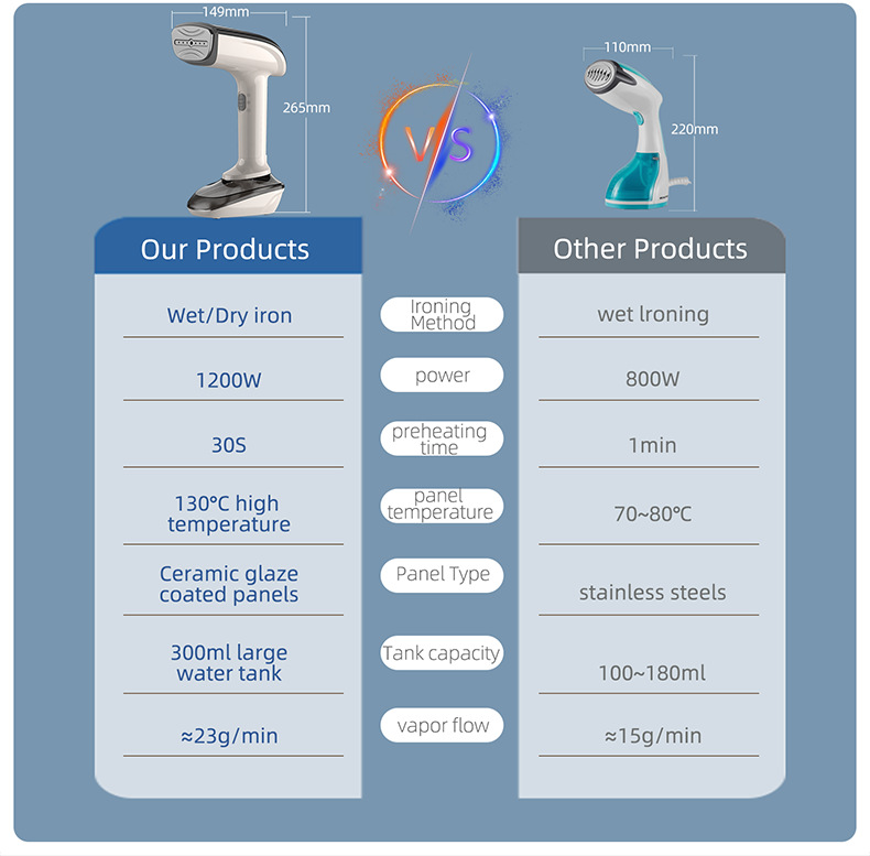 外贸新款1200W烫斗机,七孔快速升温出气,强劲有穿透力。 一键烫斗,持续蒸汽,预热灯光提示,简单操作,一体式压铸铝面板,快速导热,干烫温烫功能自由切换,可拆卸水箱,底部出水口,用完快速放水,三重防干烧(可视水箱、超温断电、热保丝保护)安全保障,支持拿样,支持一件代发,支持OEM ,欢迎询价