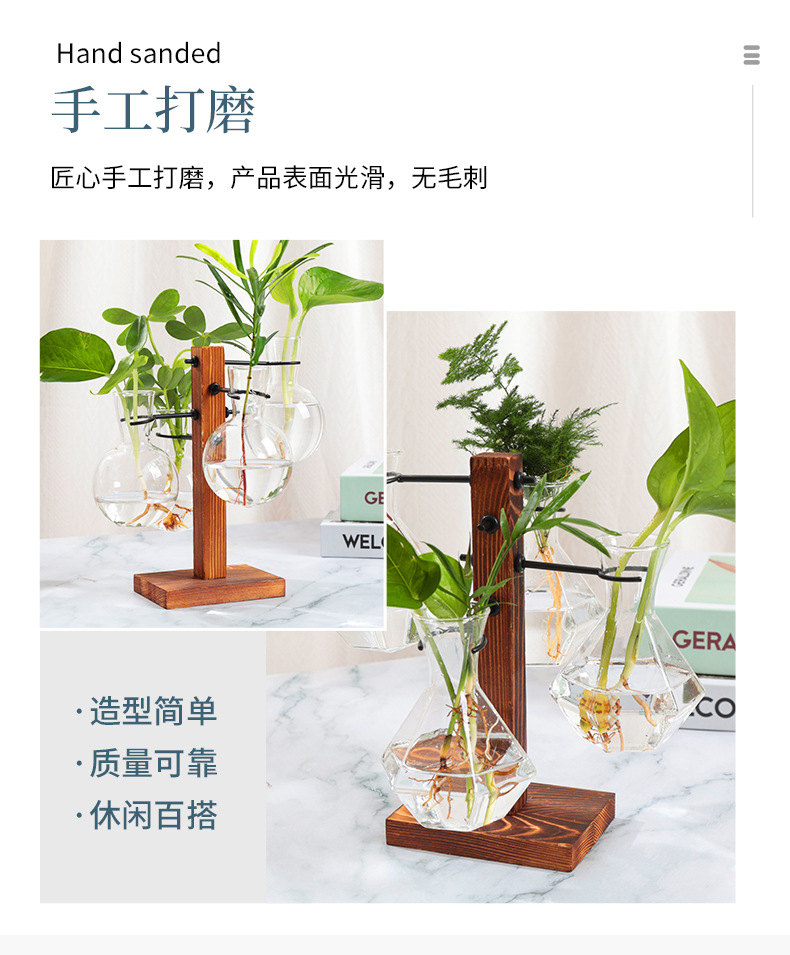 제조업체는 유럽 스타일의 창의적인 작은 꽃병 장식품, 나무 받침대 수경 장식품, 장식용 꽃병을 공급합니다.스토어 가기