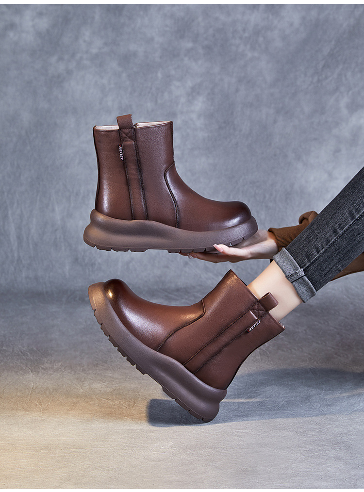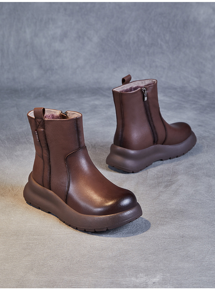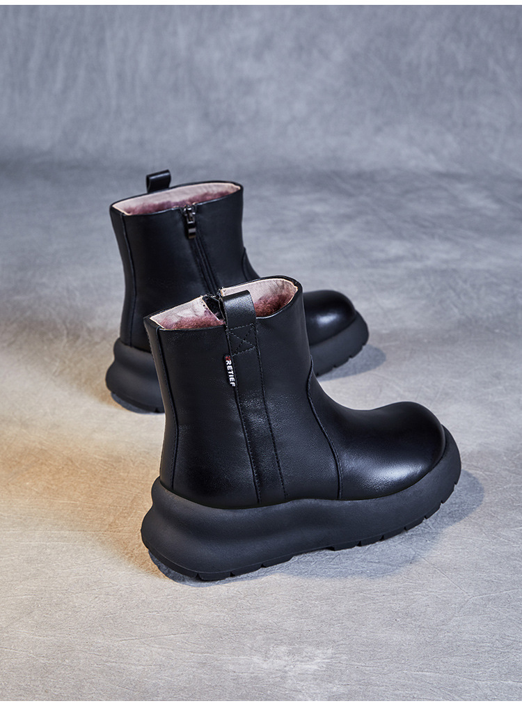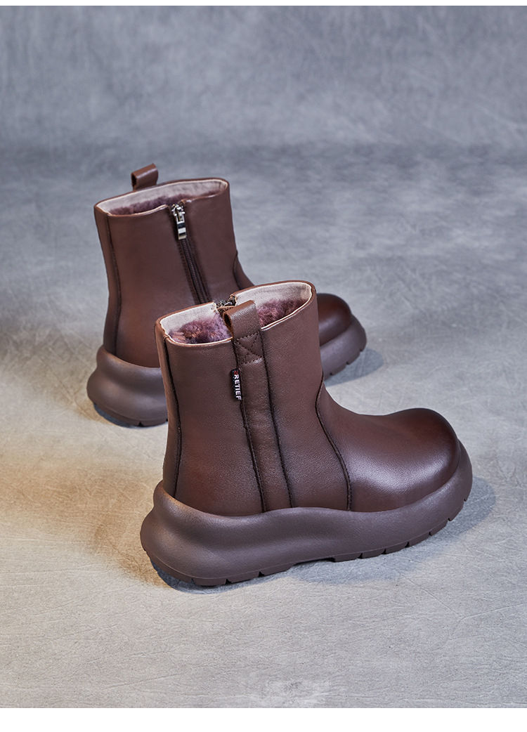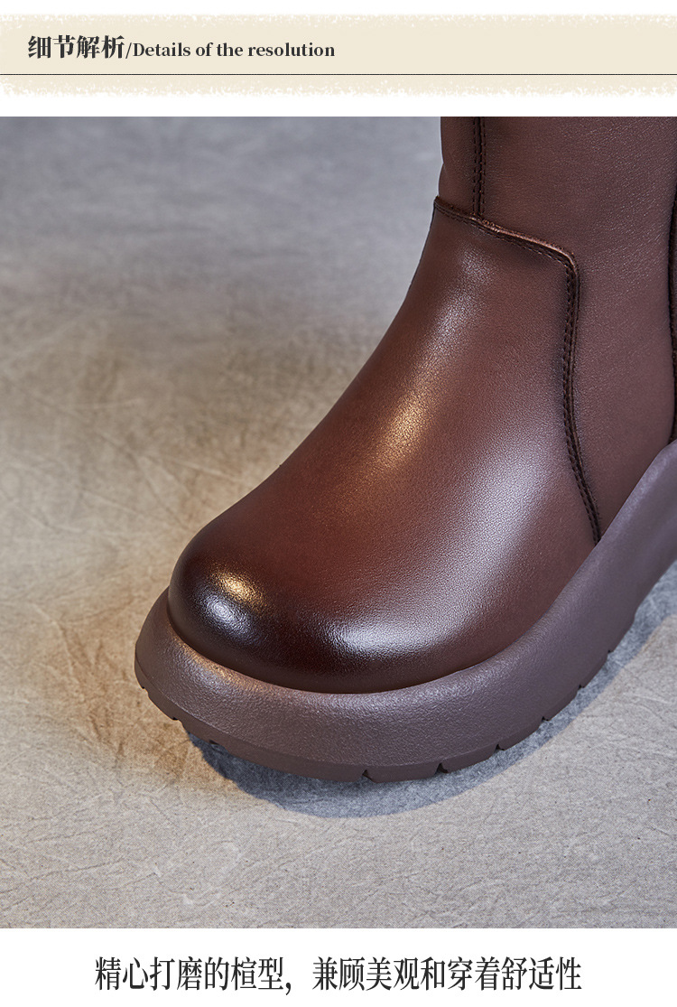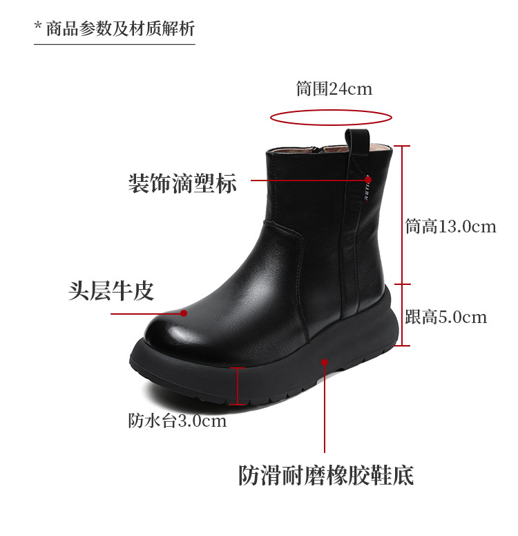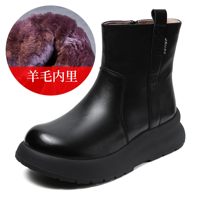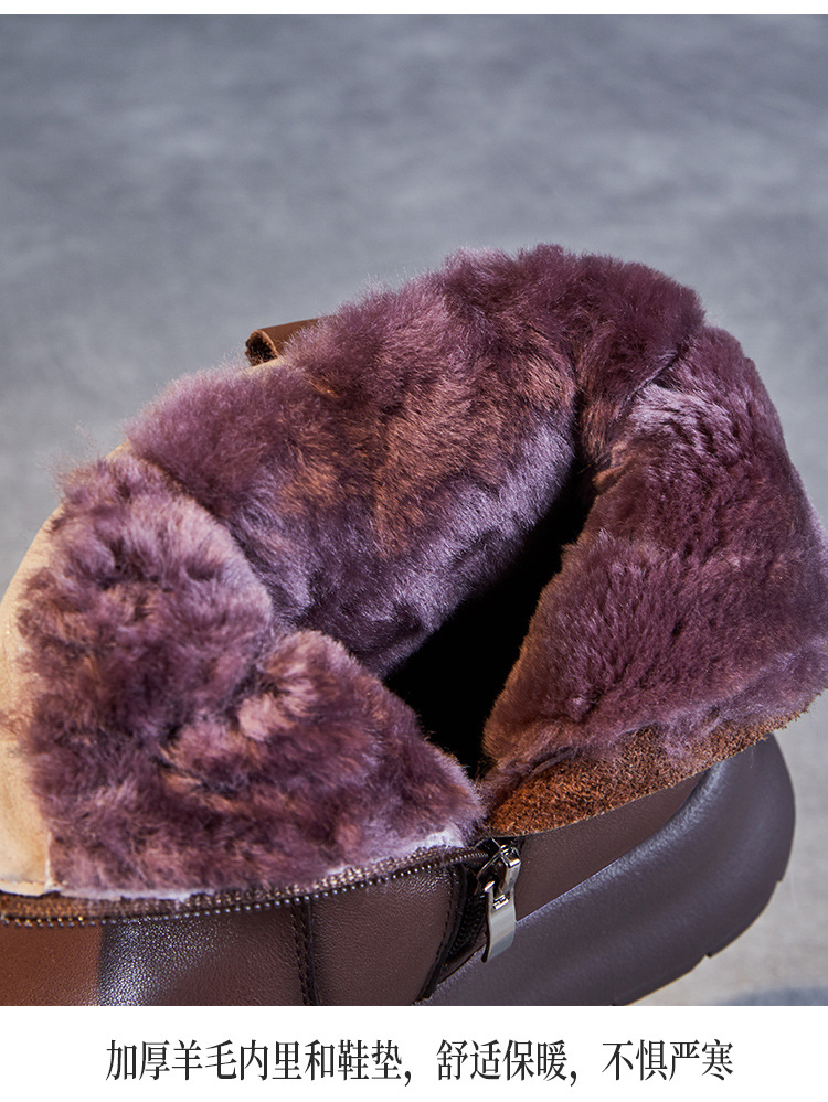탑 레이어 소가죽 두꺼운 밑창 울 23 년 겨울 기모 두꺼운 어머니 신발 면 패딩 신발 여성용 미드 튜브 가죽 스노우 부츠