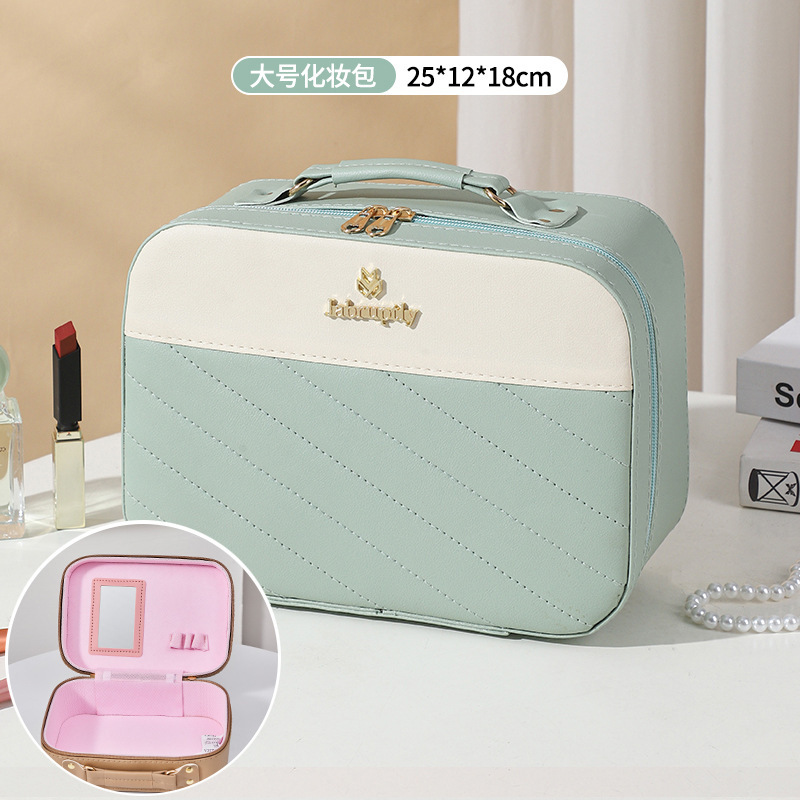 가죽 화장품 가방 여성의 대용량 저장 상자 휴대용 화장품 케이스 높은 색상 가치 화장품 보관 가방 도매