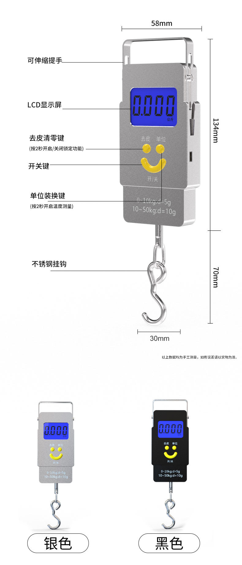 추천 미니 전자 스케일 익스프레스 스케일 50kg 휴대용 계량 장치 매달려있는 스케일 스프링 스케일 낚시 후크스토어 가기