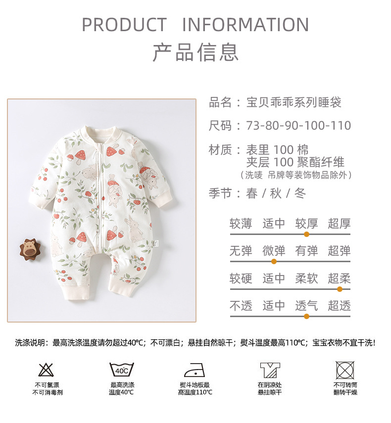 아기 침낭 가을과 겨울 면 아기 면 잠옷 신생아 지퍼 킥 방지 다리가 갈라진 긴팔 아기 침낭스토어 가기