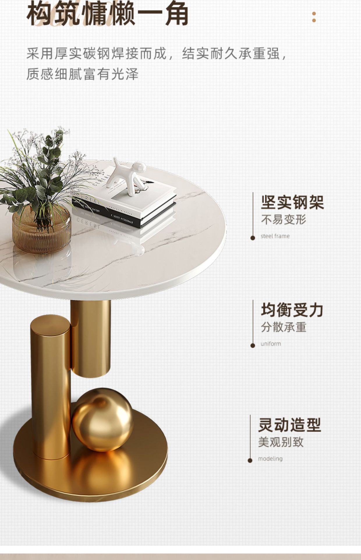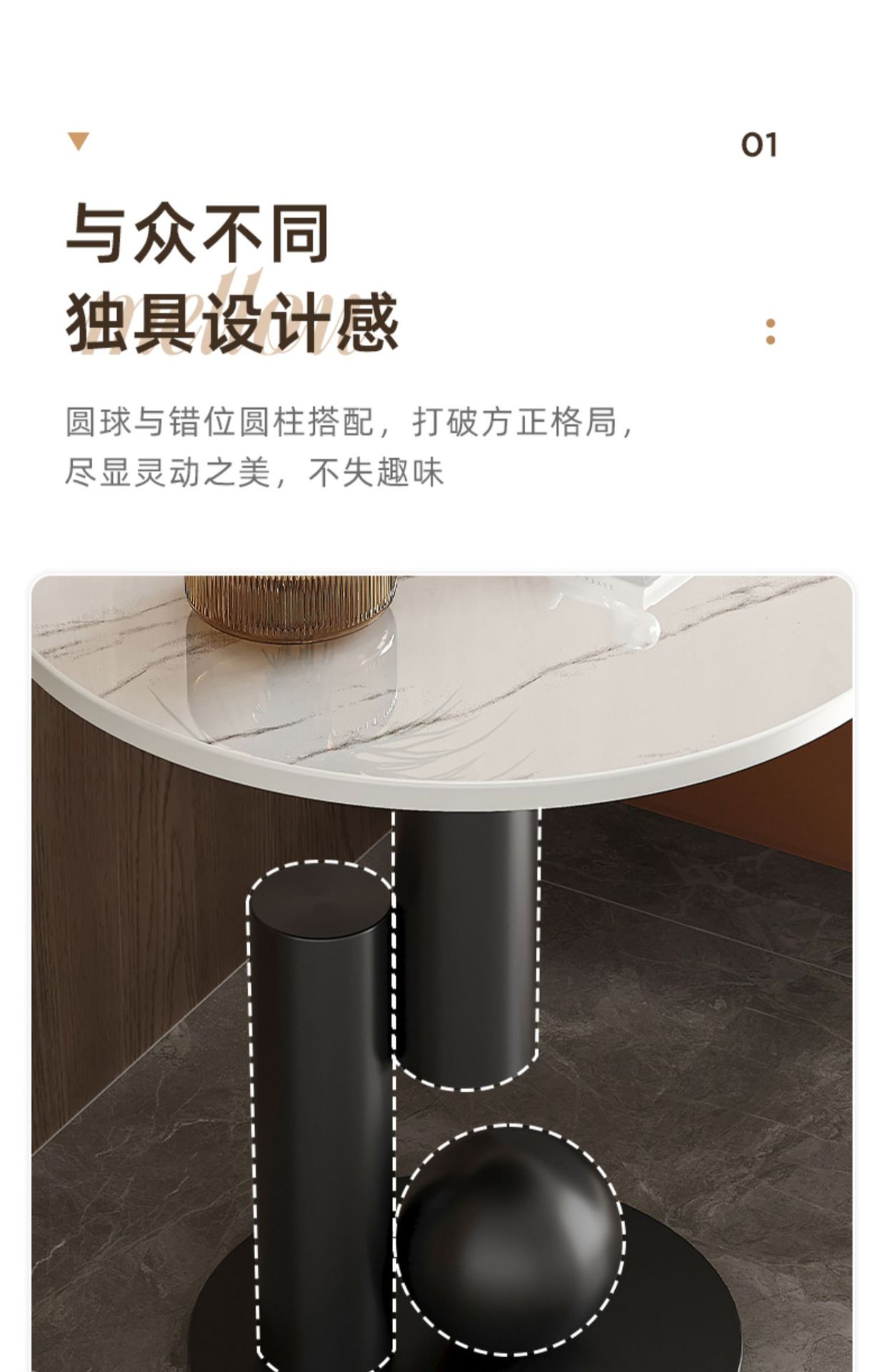 轻奢沙发边几边柜圆形小茶几客厅角几现代小户型茶桌岩板小圆桌子