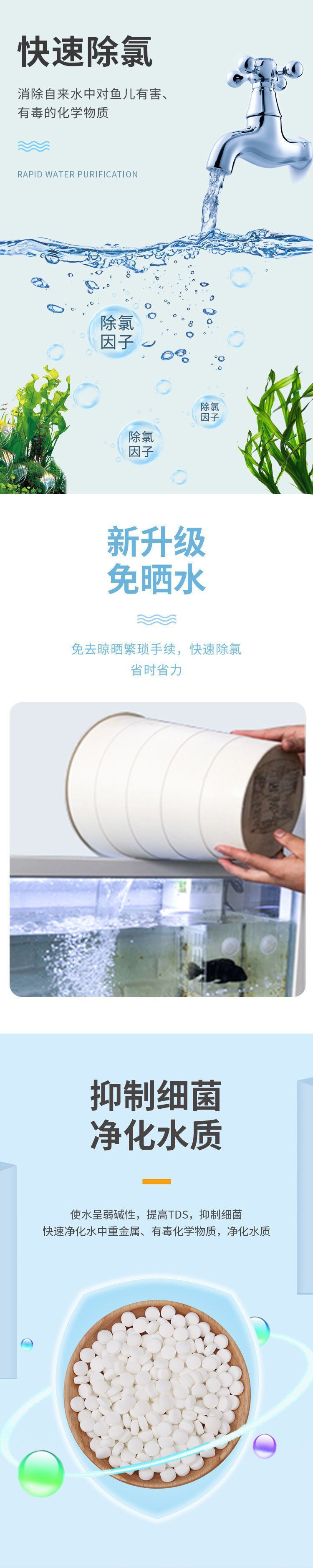 Yulebao BESSN 염소 제거 어항 정수 에이전트 수족관 수질 안정적인 태블릿 수돗물 태양없는 물 갇힌 물스토어 가기