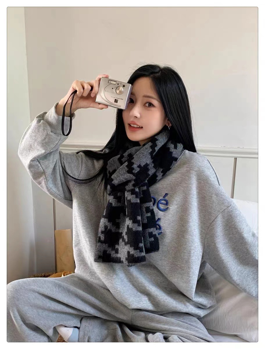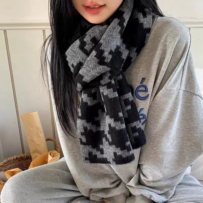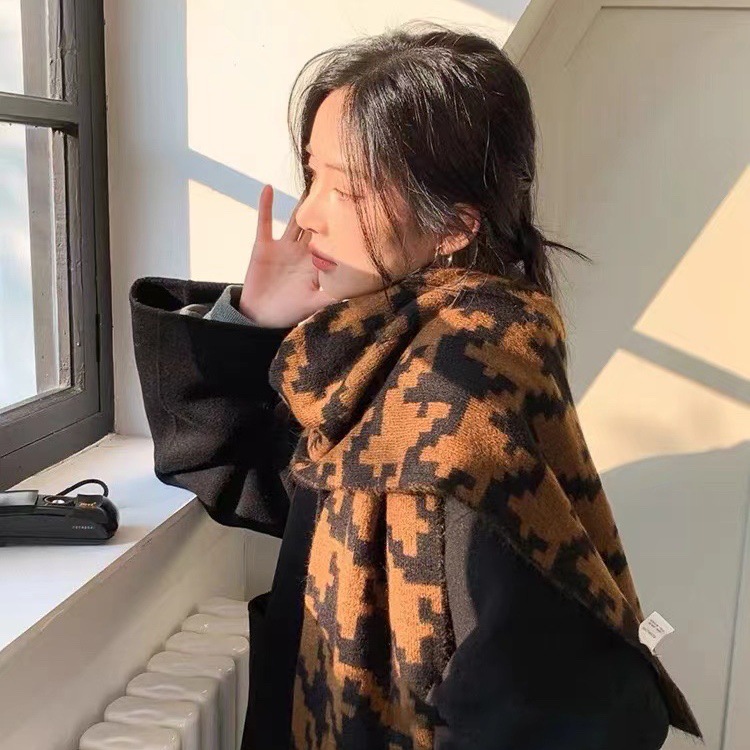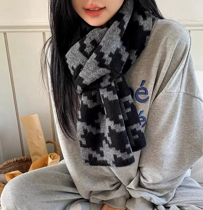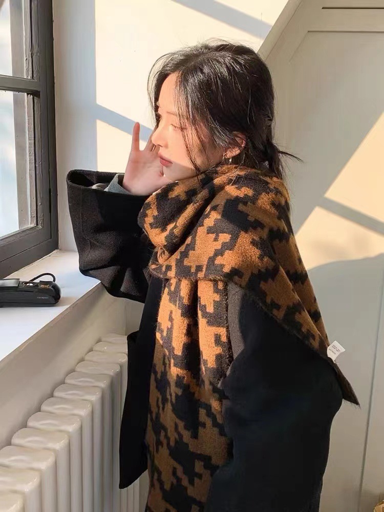 한국식 in houndstooth 스카프 유행 올 매치 겨울 따뜻한 두꺼운 스카프 목도리 고급 분위기스토어 가기