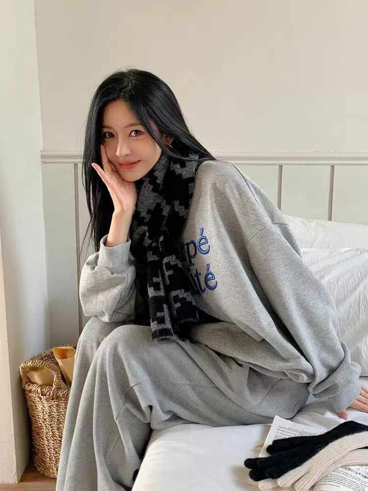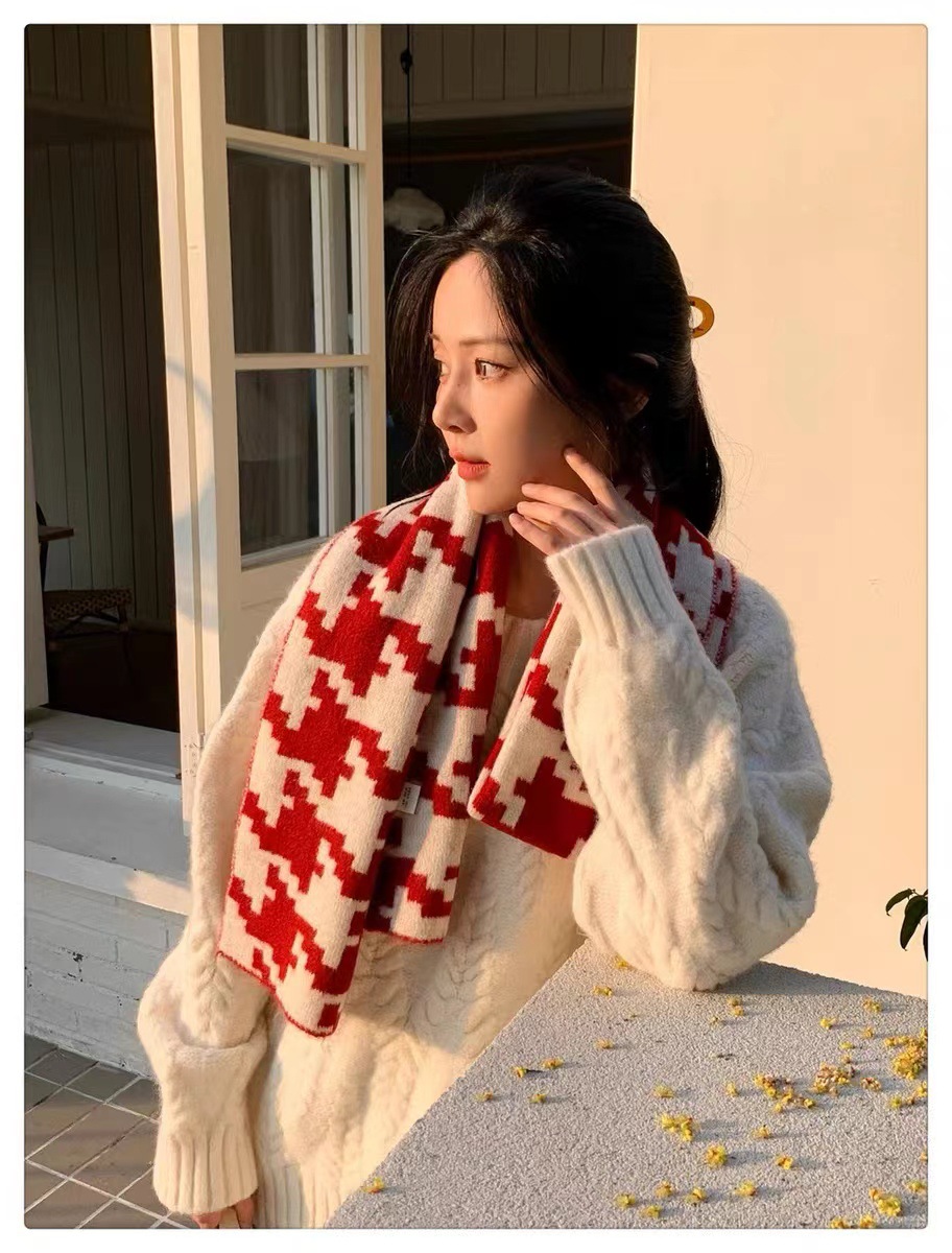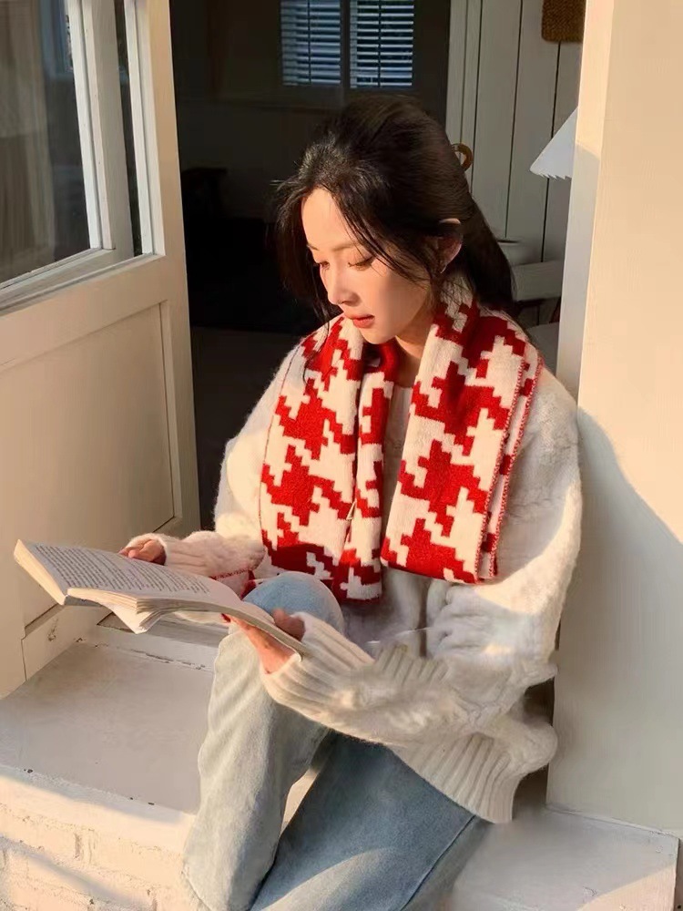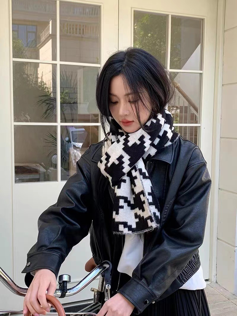 한국식 in houndstooth 스카프 유행 올 매치 겨울 따뜻한 두꺼운 스카프 목도리 고급 분위기스토어 가기