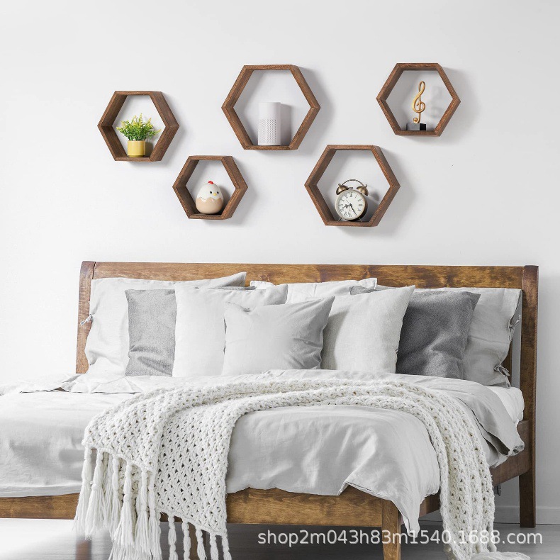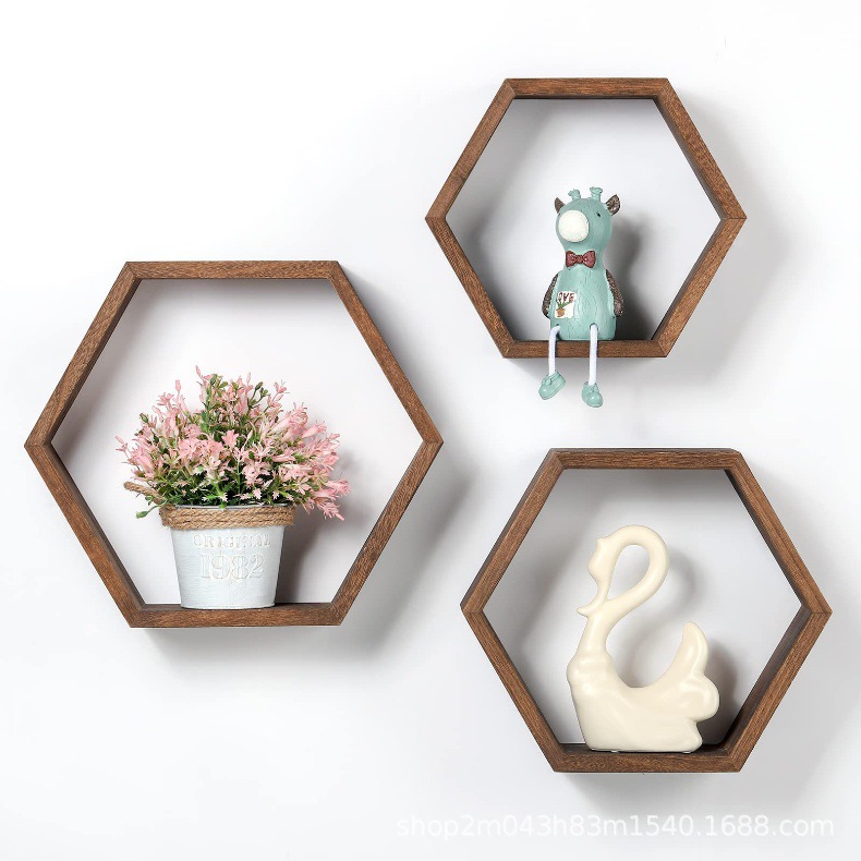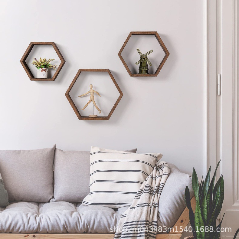 벽 선반 벽 교수형 나무 육각형 격자 스토리지 랙 즙이 많은 식물 랙 거실 장식 벽 선반스토어 가기