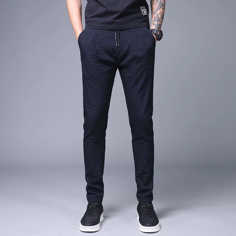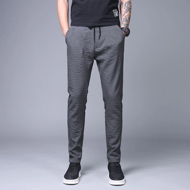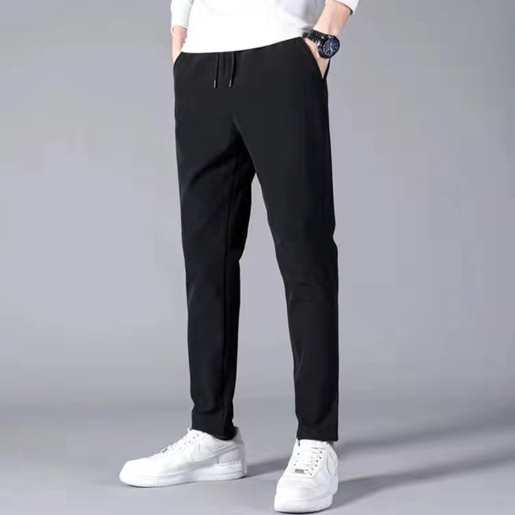 여름 남자 아이스 실크 얇은 캐주얼 긴 바지 느슨한 스포츠 바지 플러스 사이즈 스트레이트 팬츠 남성용 마구간 제품