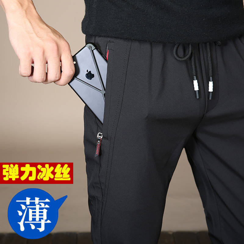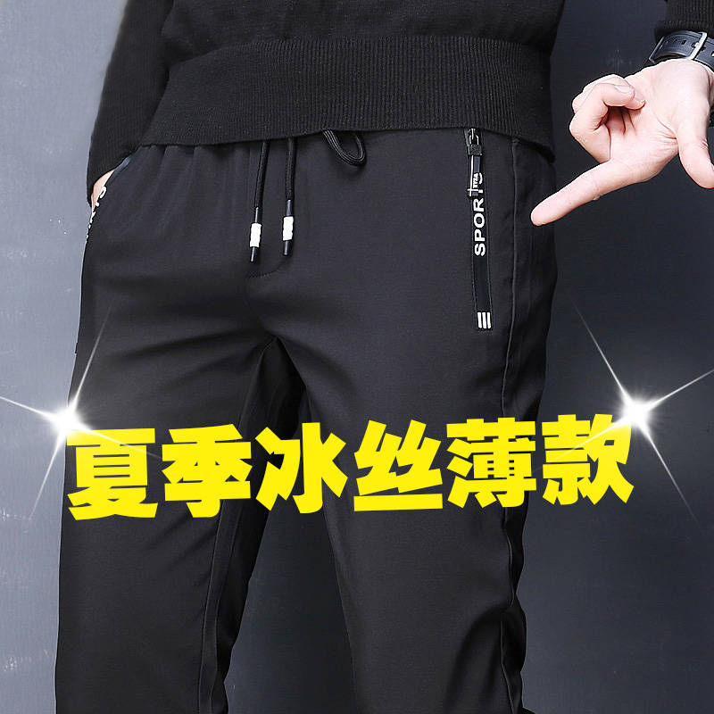 여름 남자 아이스 실크 얇은 캐주얼 긴 바지 느슨한 스포츠 바지 플러스 사이즈 스트레이트 팬츠 남성용 마구간 제품스토어 가기