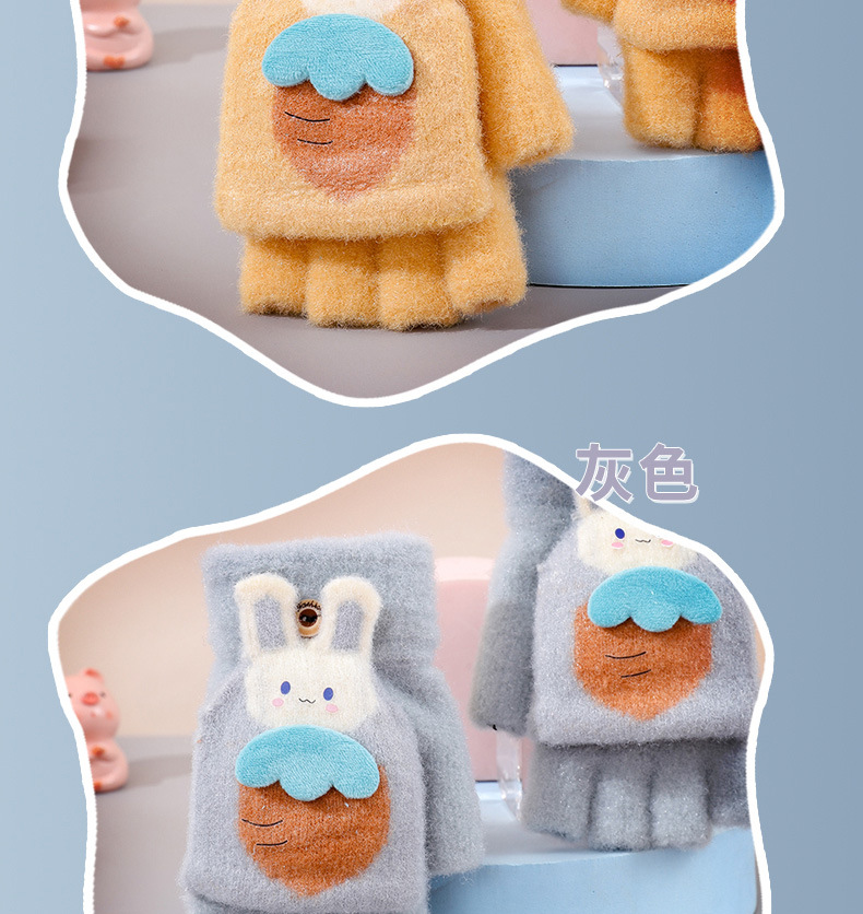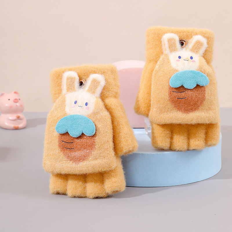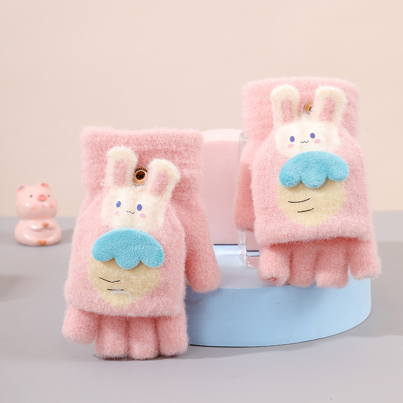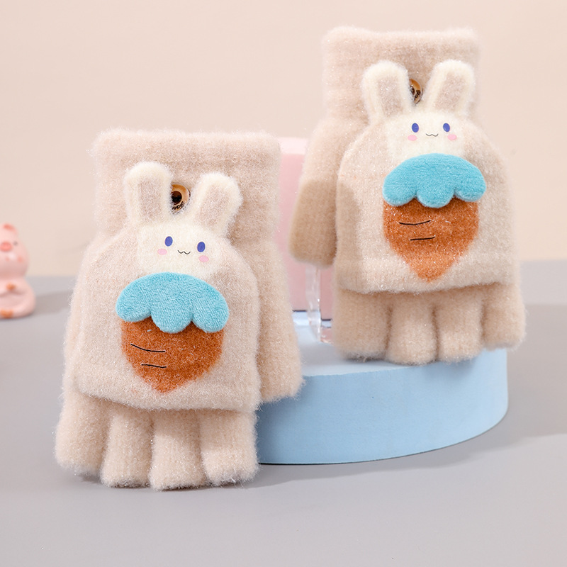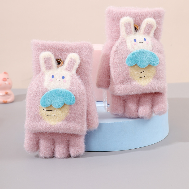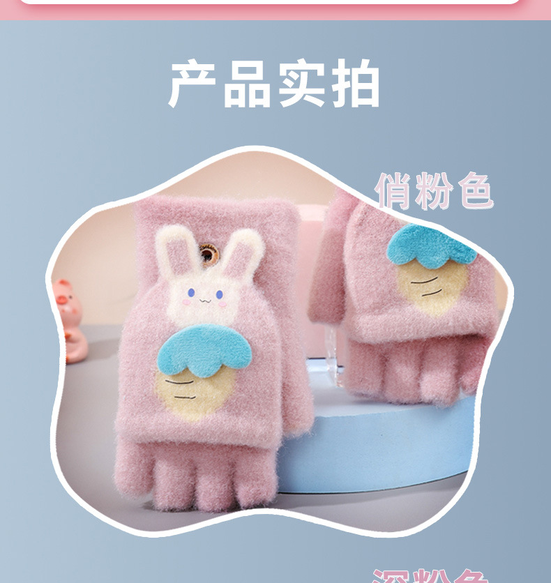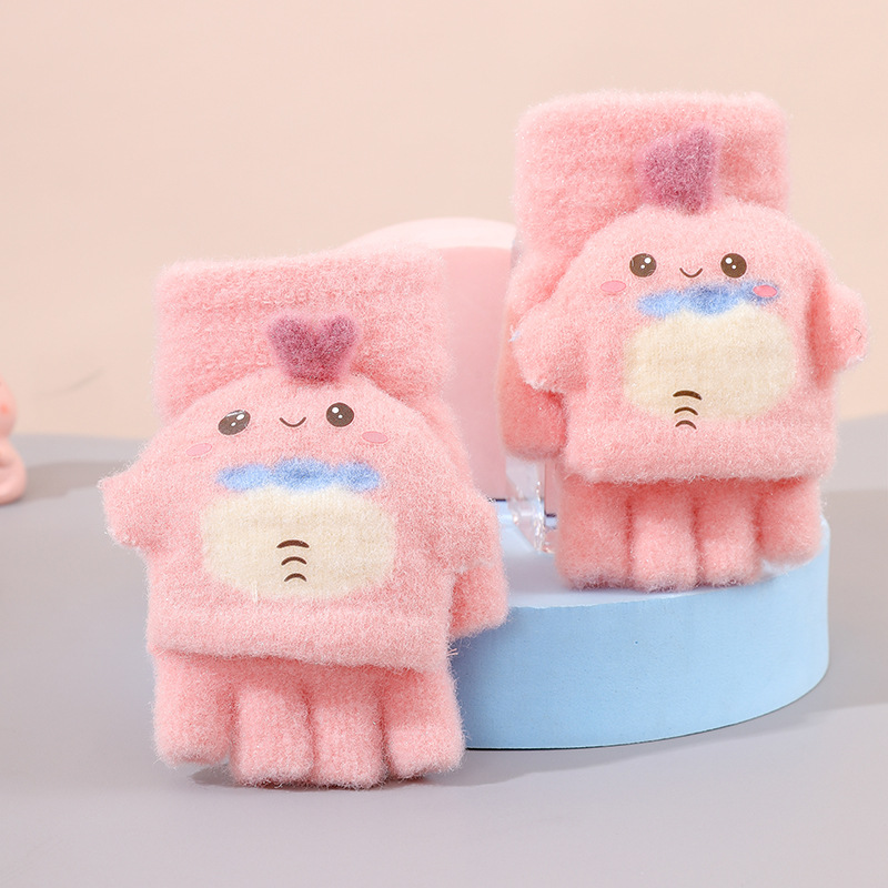 어린이 겨울 따뜻한 장갑 소년과 소녀 두꺼운 플립 커버 다섯 손가락 귀여운 소녀의 반 손가락 울 쓰기 손가락 홀스터