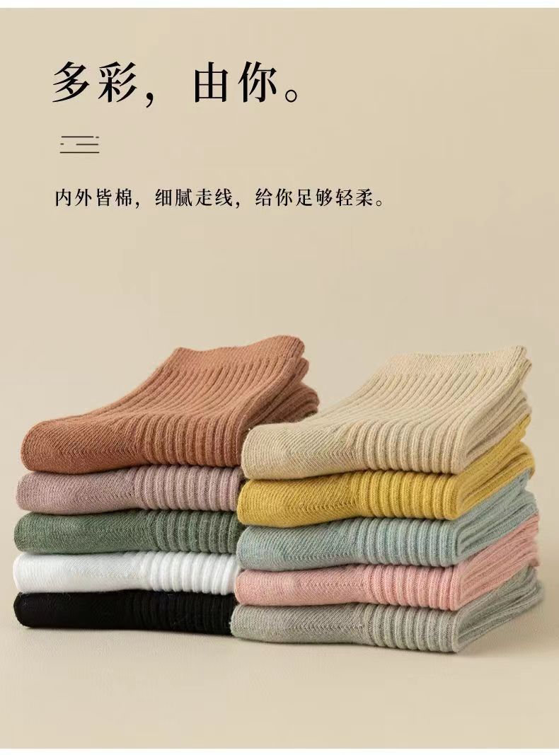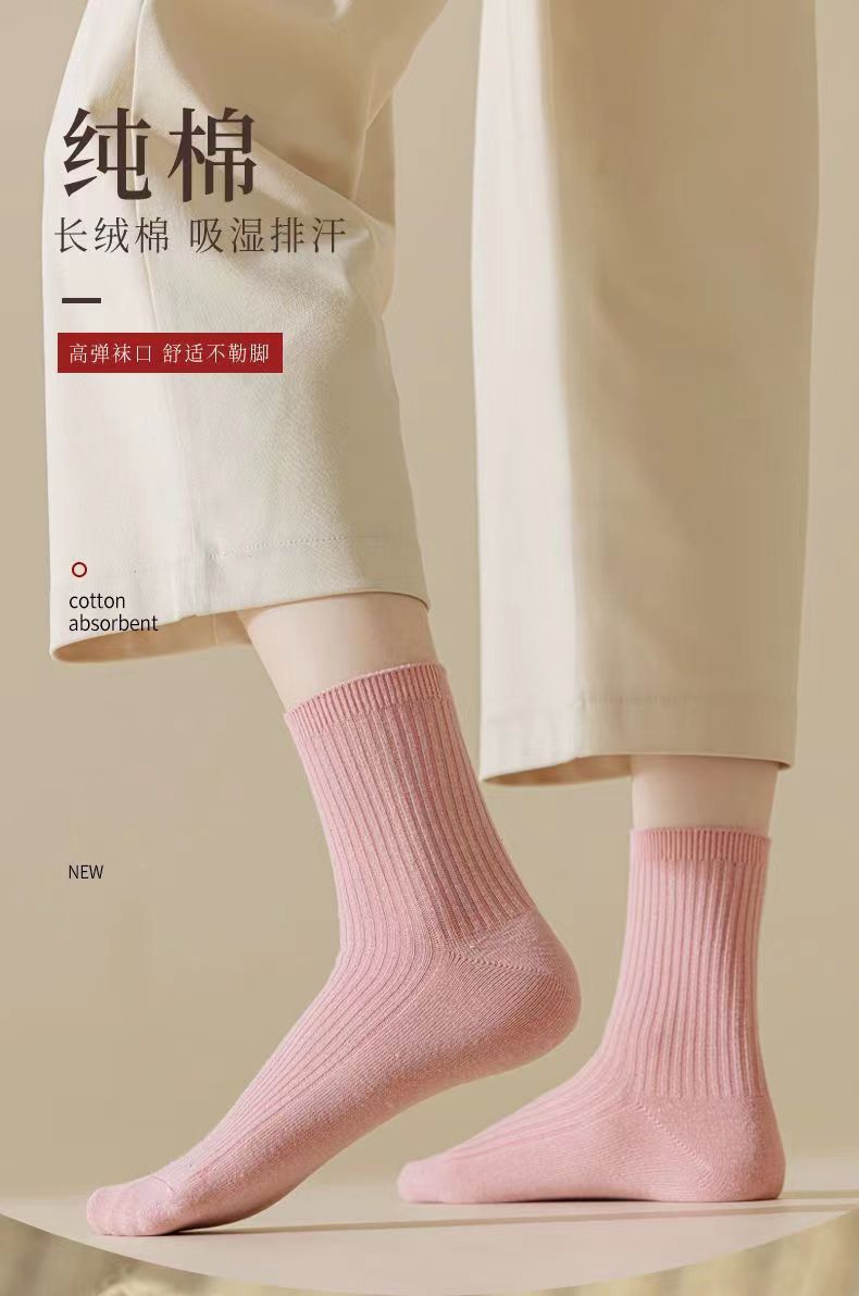 7A 등급 더블 바늘 양말 남성용 단색 캐주얼 코튼 양말 가을과 겨울 두꺼운 따뜻한 빗질 면화 여성 양말 도매 면화스토어 가기