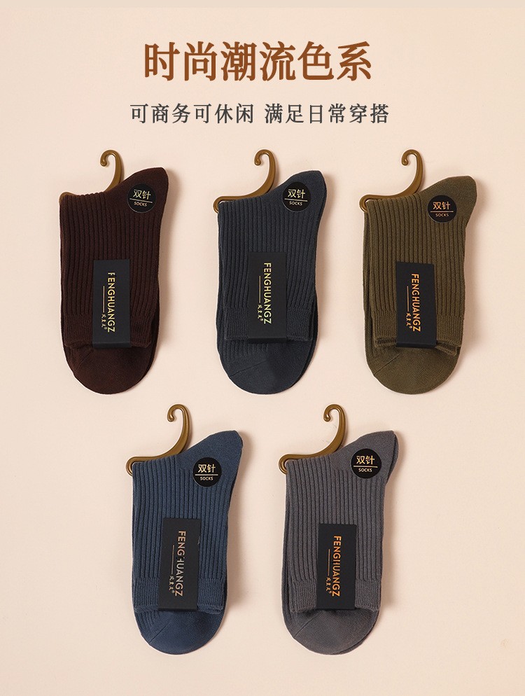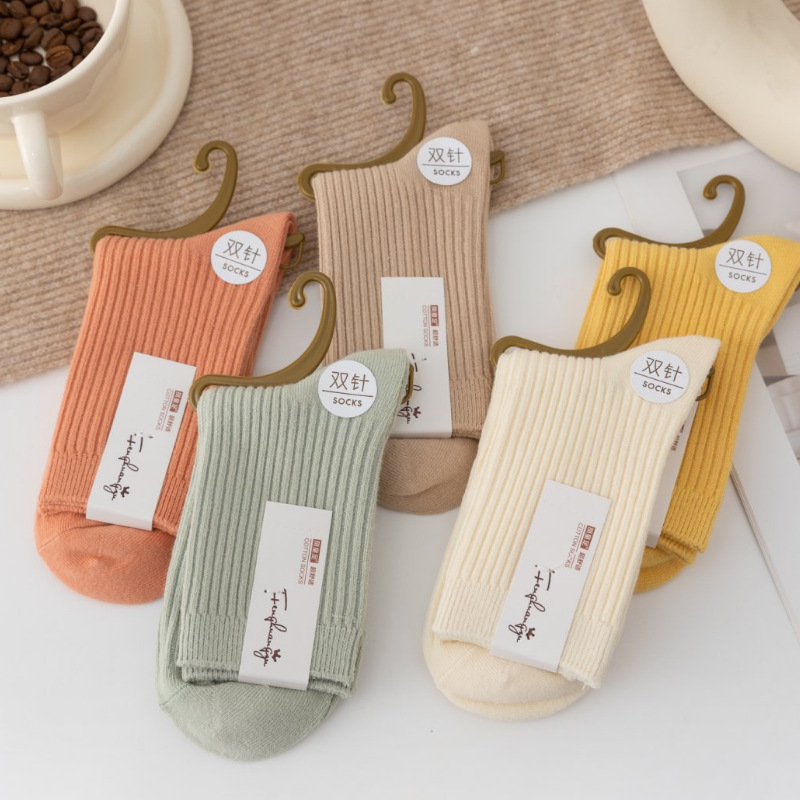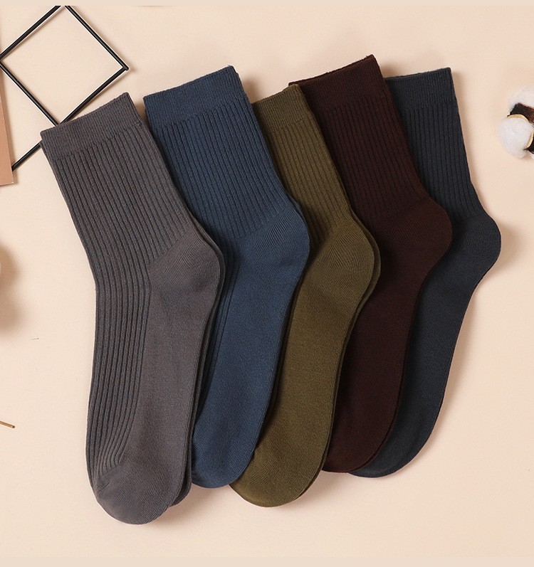 7A 등급 더블 바늘 양말 남성용 단색 캐주얼 코튼 양말 가을과 겨울 두꺼운 따뜻한 빗질 면화 여성 양말 도매 면화
