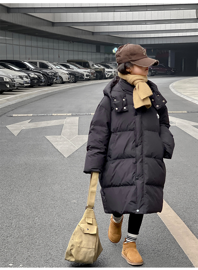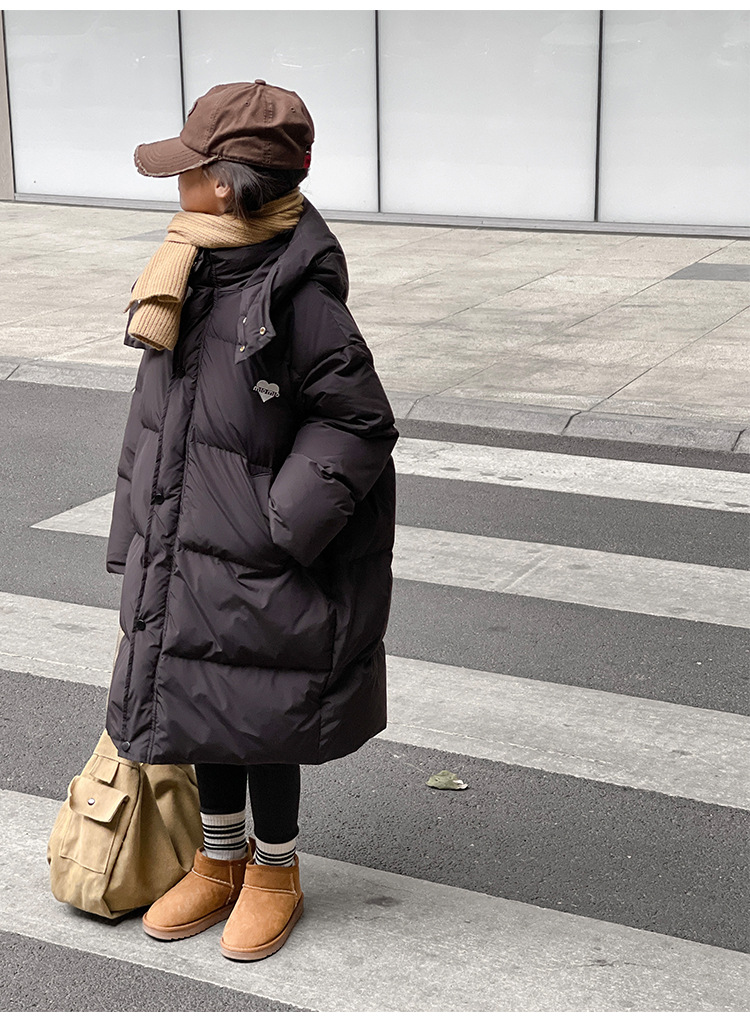 한국 아동복 아동 다운 재킷 소년과 소녀를위한 중간 길이 무릎 길이 두꺼운 겨울 의류 아기의 새해 서비스스토어 가기