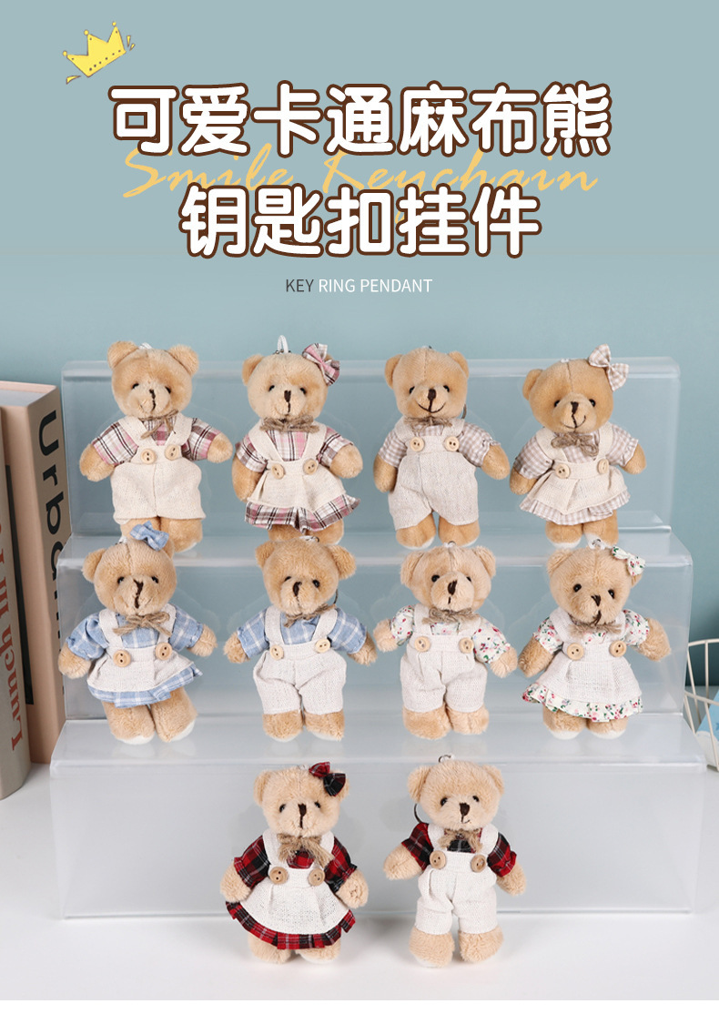 다양한 린넨 커플 테디 베어 봉제 장난감 펜던트 린넨 베어 가방 열쇠 고리 펜던트 인형스토어 가기