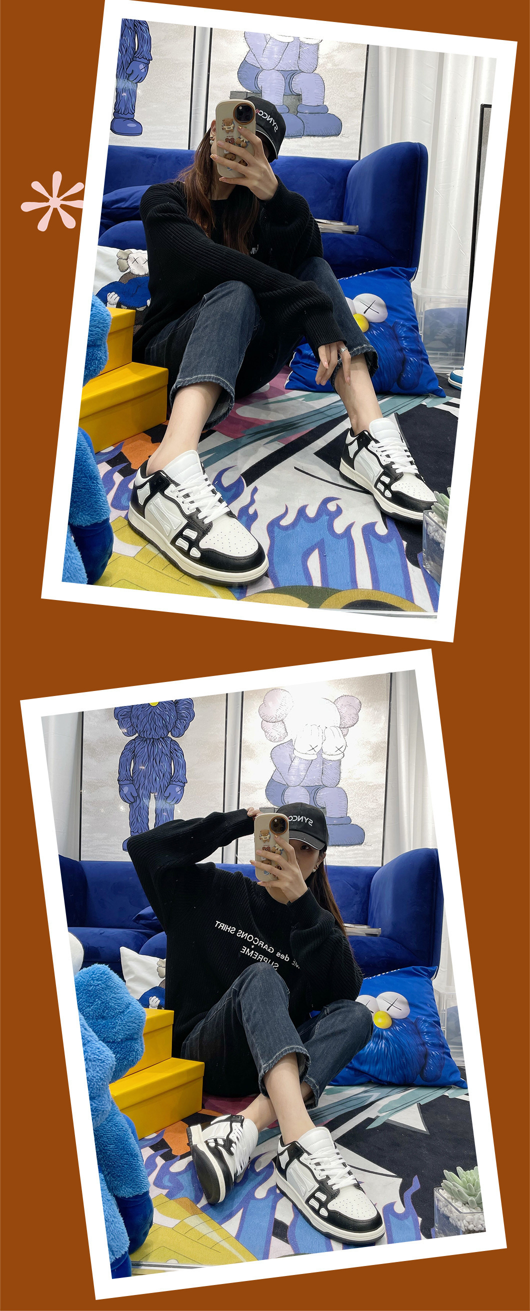 Putian 신발 하이 버전 패션 Baita 블랙 본 슈즈 로우 탑 캐주얼 보드 슈즈 스포츠 남성 및 여성용 화이트 슈즈스토어 가기