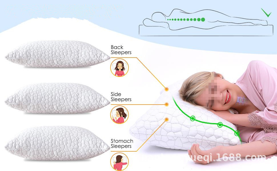 깨진 메모리 스펀지 베개 조절 가능한 멋진 대나무 섬유 베개 사이드 배꼽 슬리퍼 빨 수있는 이동식 베갯잇