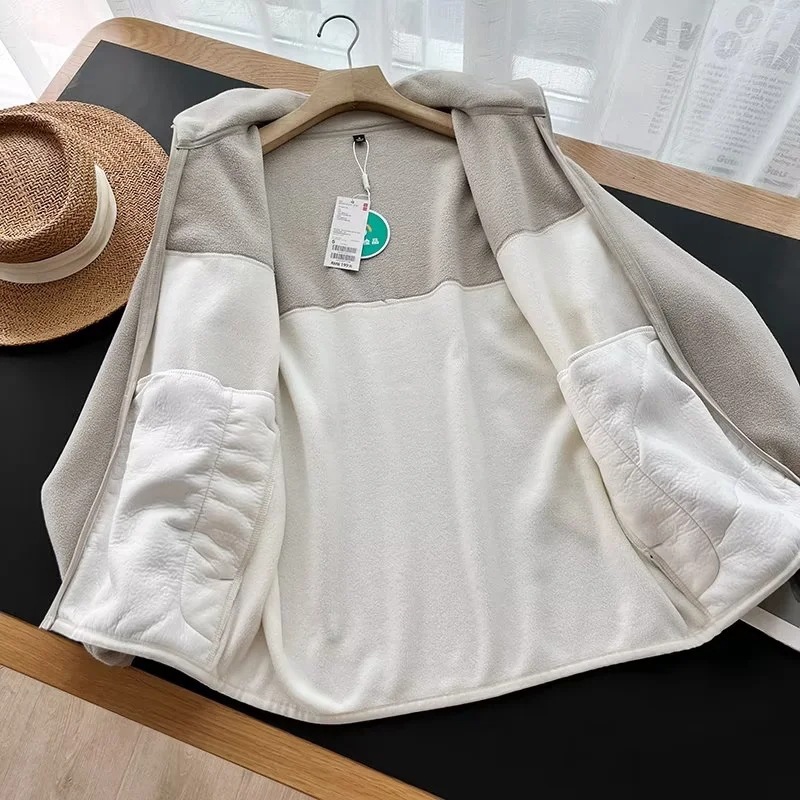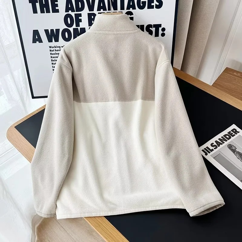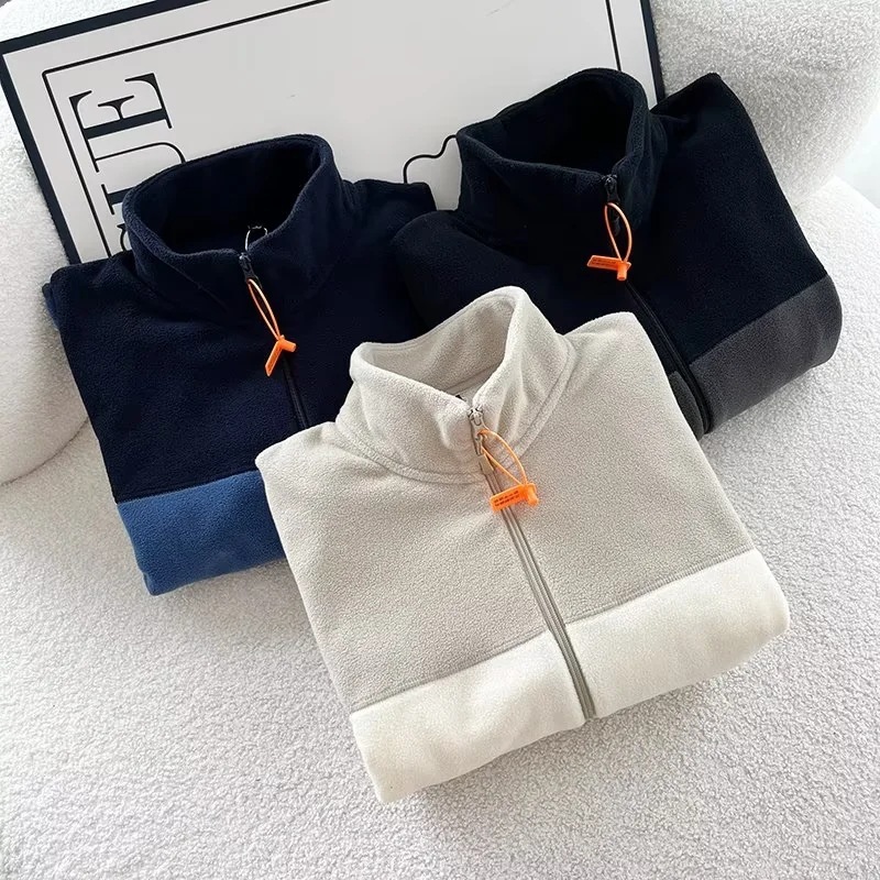일본 스타일 남녀공용 폴라 플리스 지퍼 재킷 긴팔 재킷 코트 배색 스웨트셔츠 462028스토어 가기