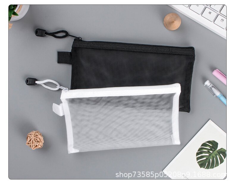 학생들을위한 간단한 메쉬 연필 케이스 투명 대용량 휴대용 지퍼 연필 문구 보관 가방 도매스토어 가기
