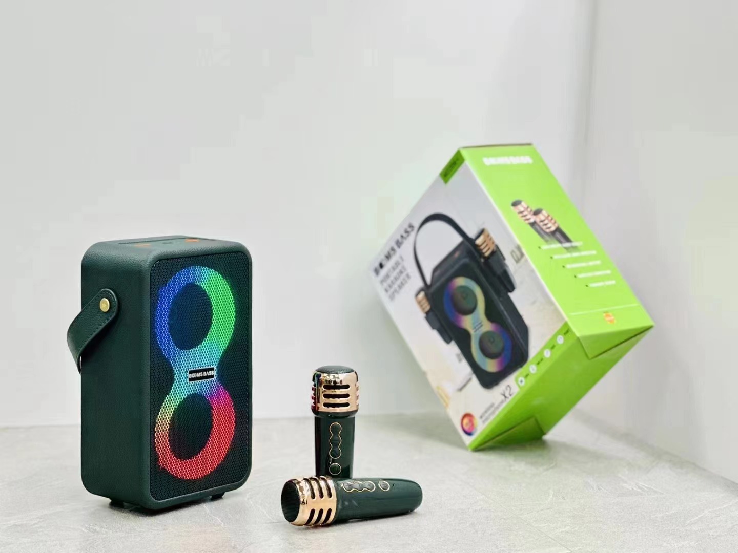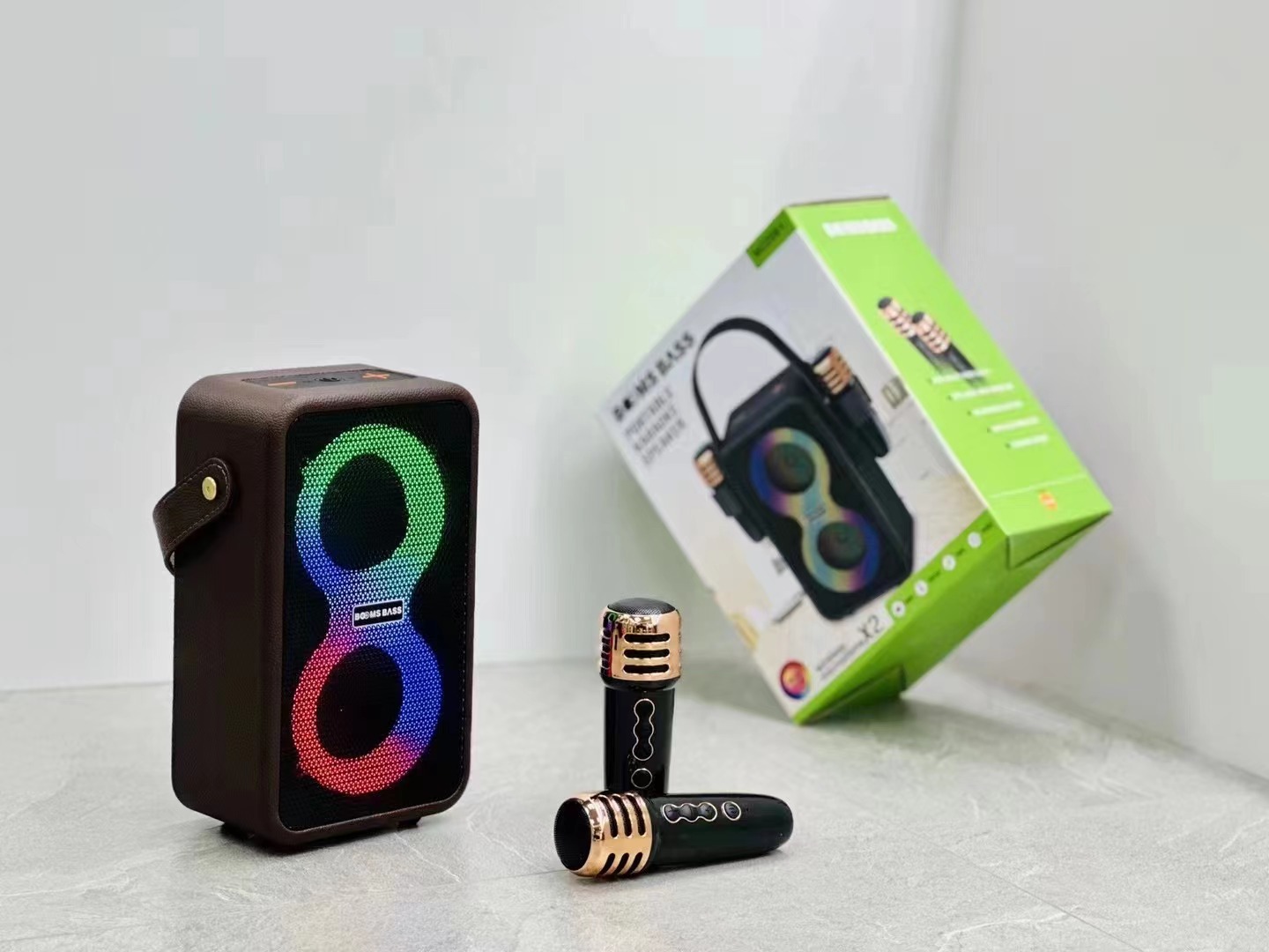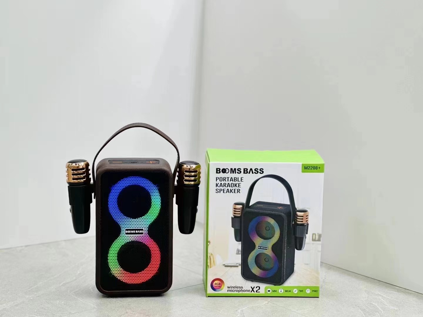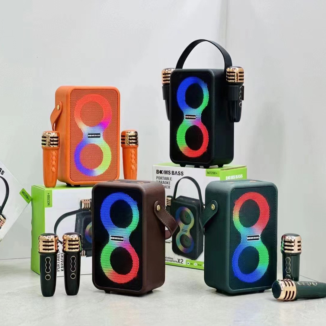 M2208+ 휴대용 블루투스 스피커, 듀얼 스피커, 무선 마이크, 노래방 마이크, 휴대용 카드 슬롯 오디오, 8자 컬러 조명