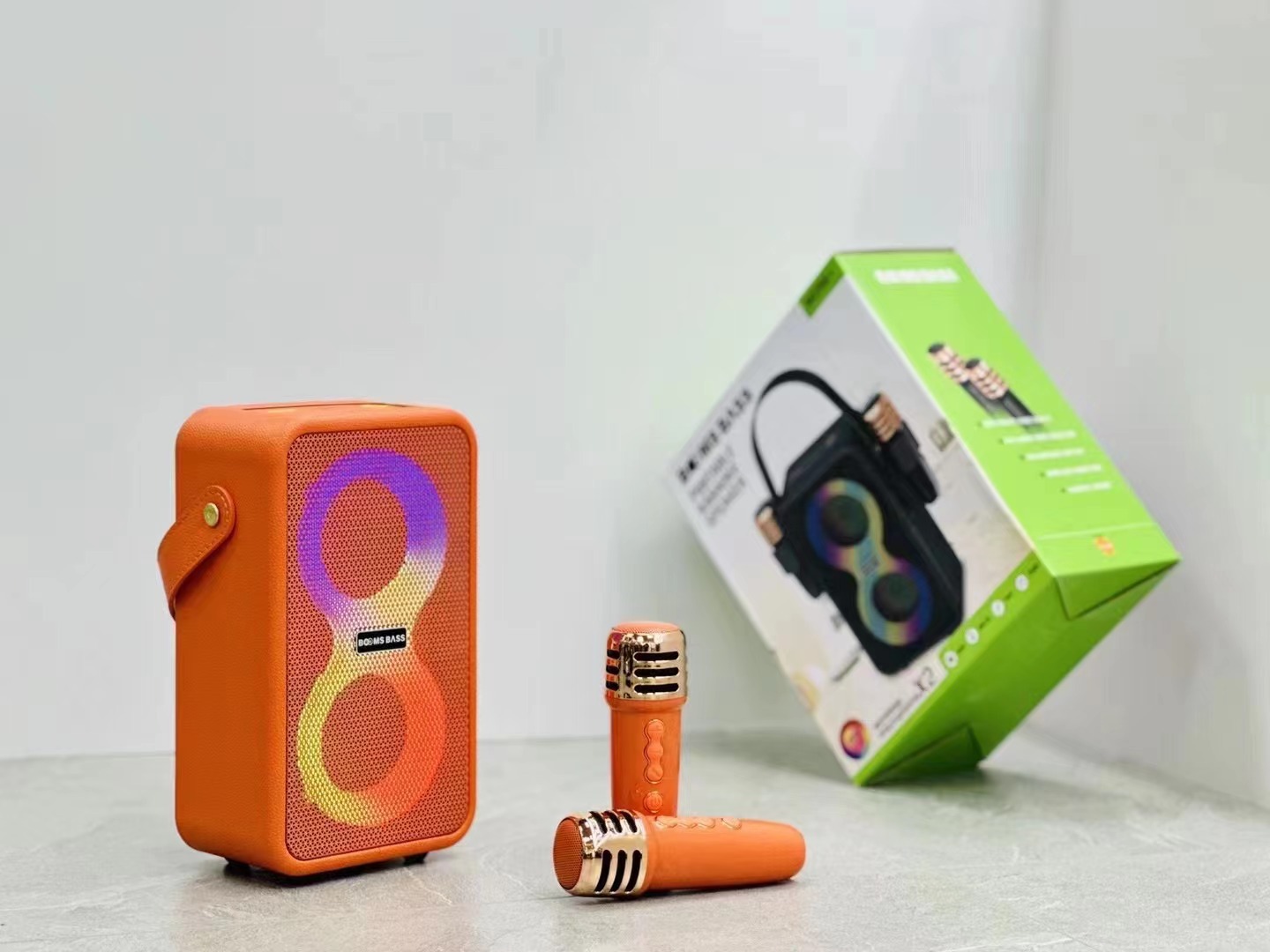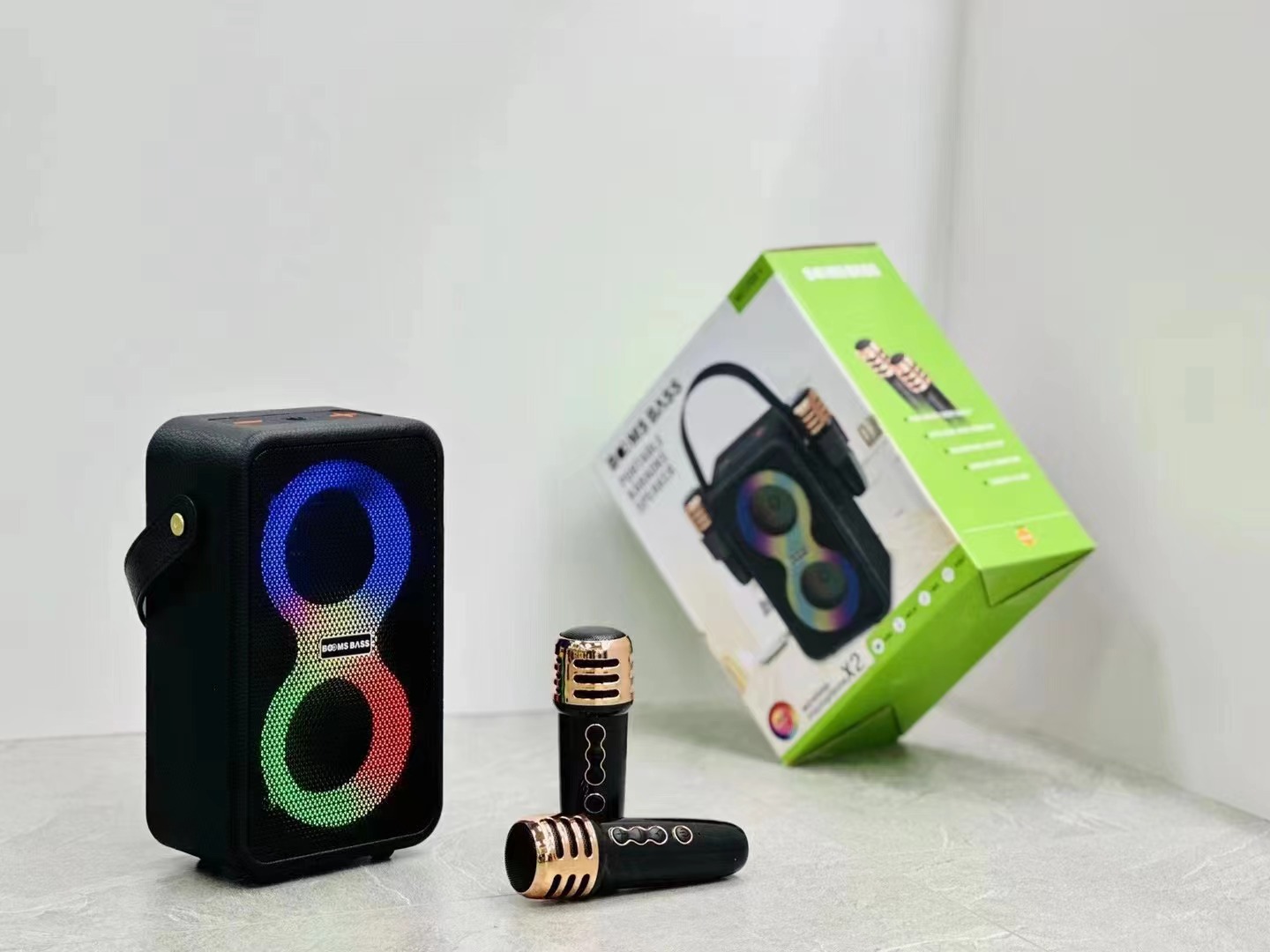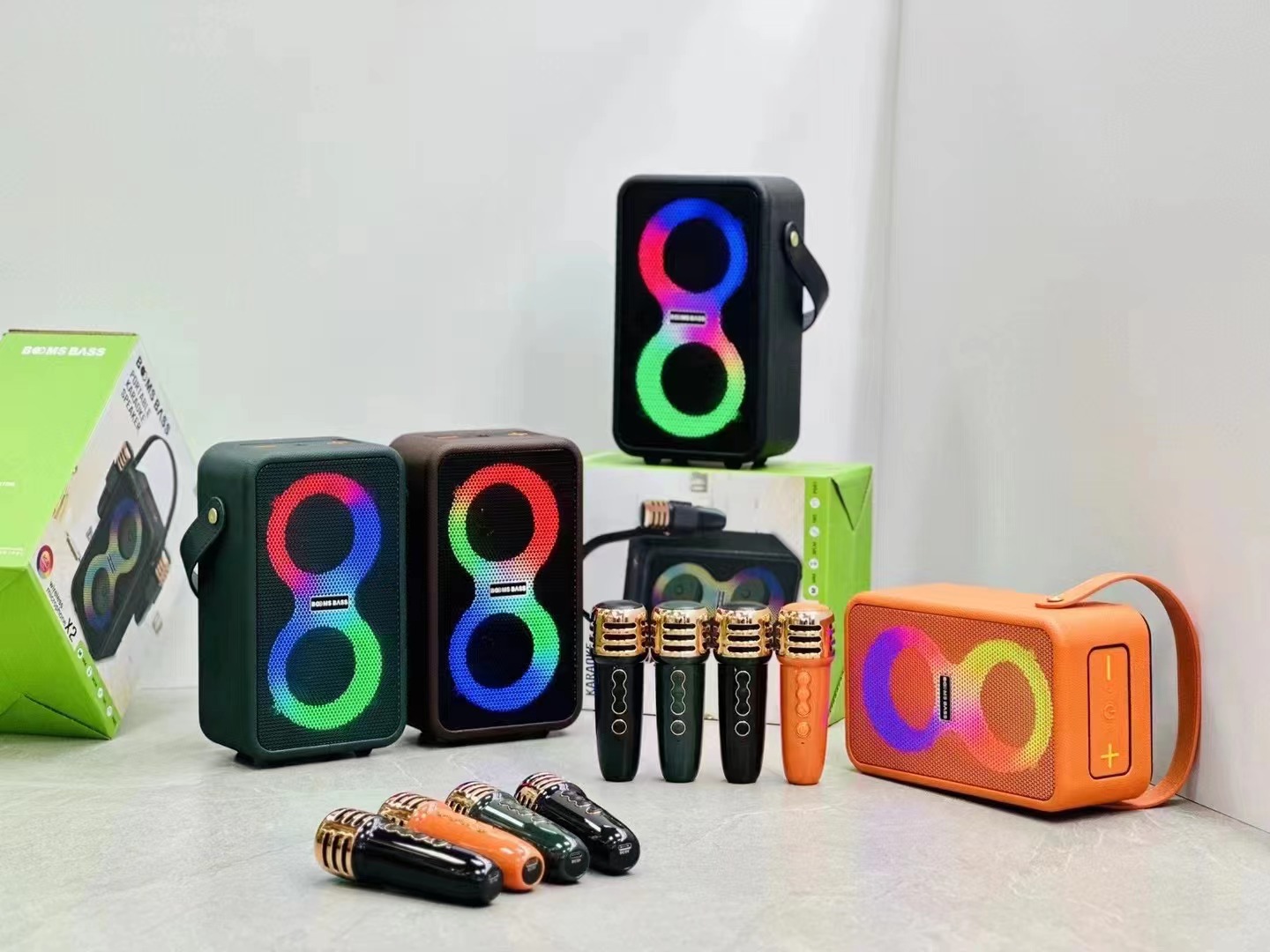 M2208+ 휴대용 블루투스 스피커, 듀얼 스피커, 무선 마이크, 노래방 마이크, 휴대용 카드 슬롯 오디오, 8자 컬러 조명
