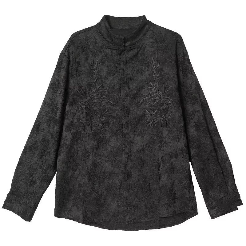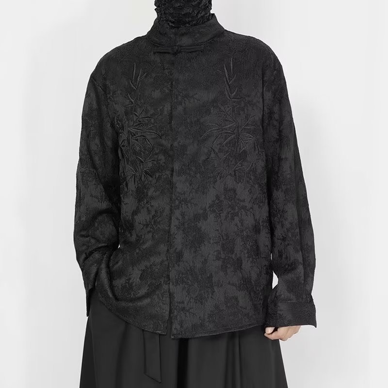 새로운 중국 스타일 내셔널 스타일 자카드 셔츠 남자의 새로운 가을 하이 엔드 스타일 스탠드 칼라 버튼 탑 자수 Duffian 잘 생긴 긴 소매 높은스토어 가기