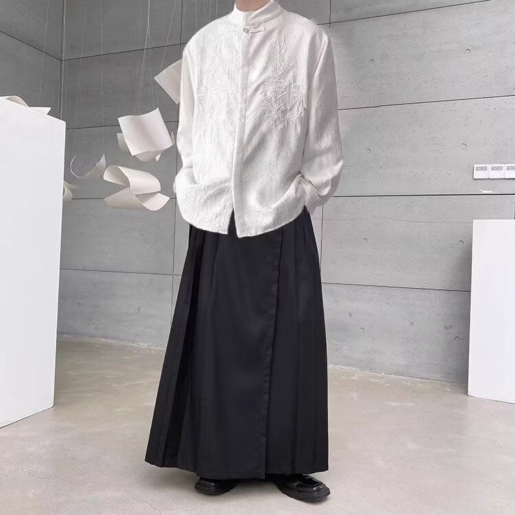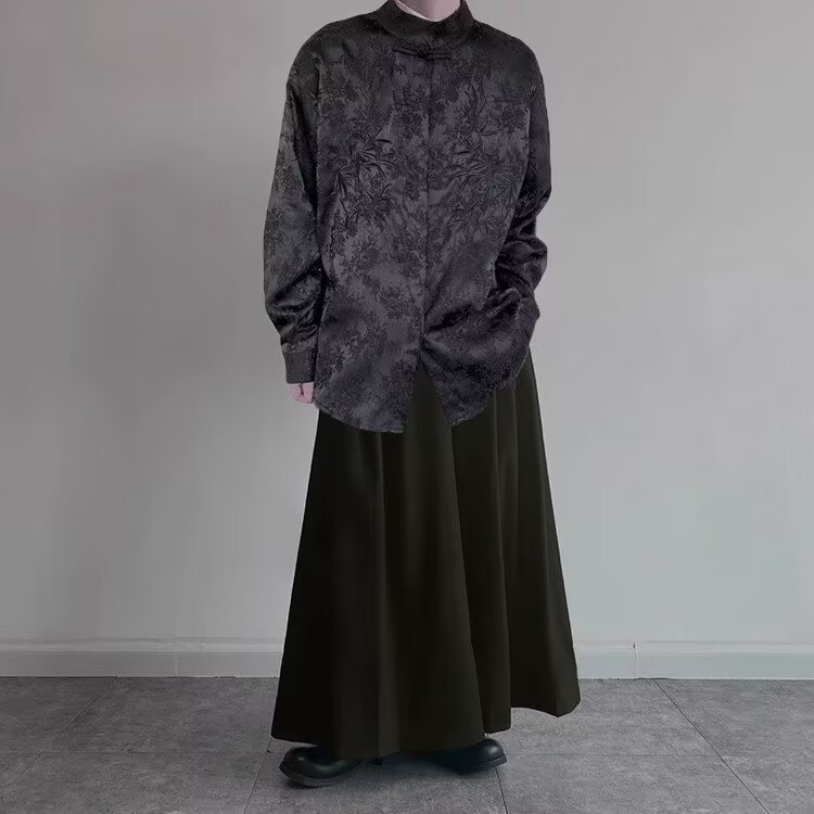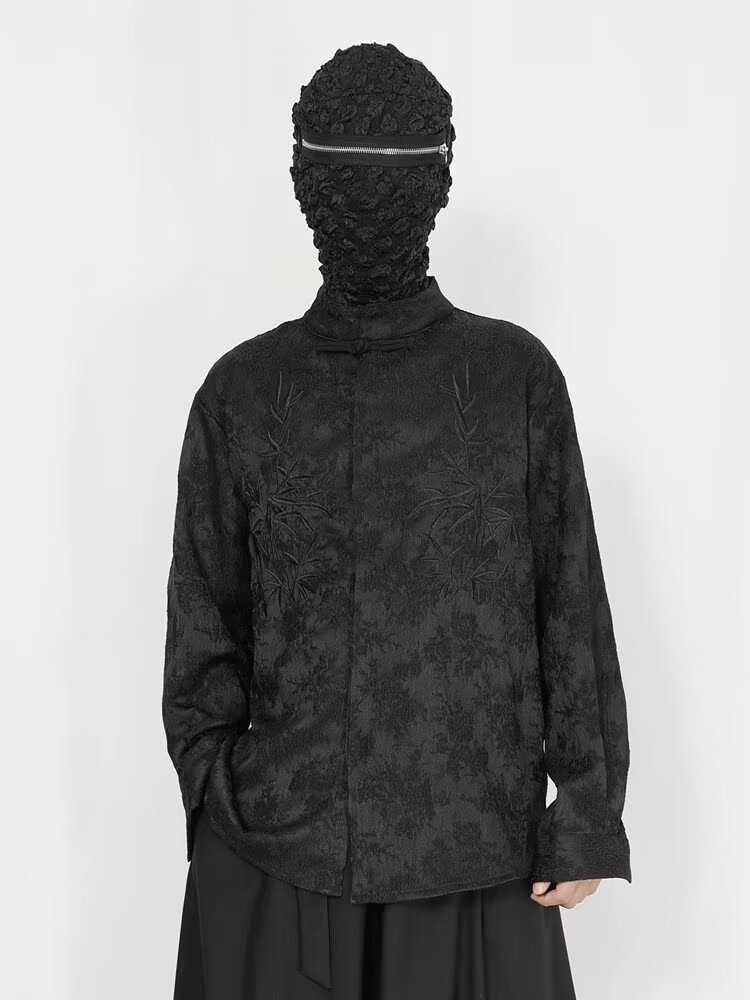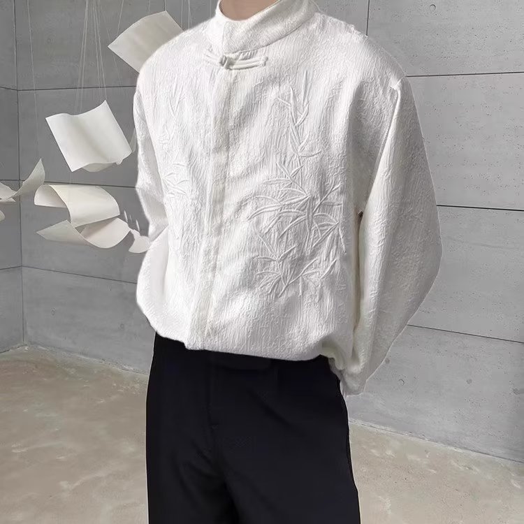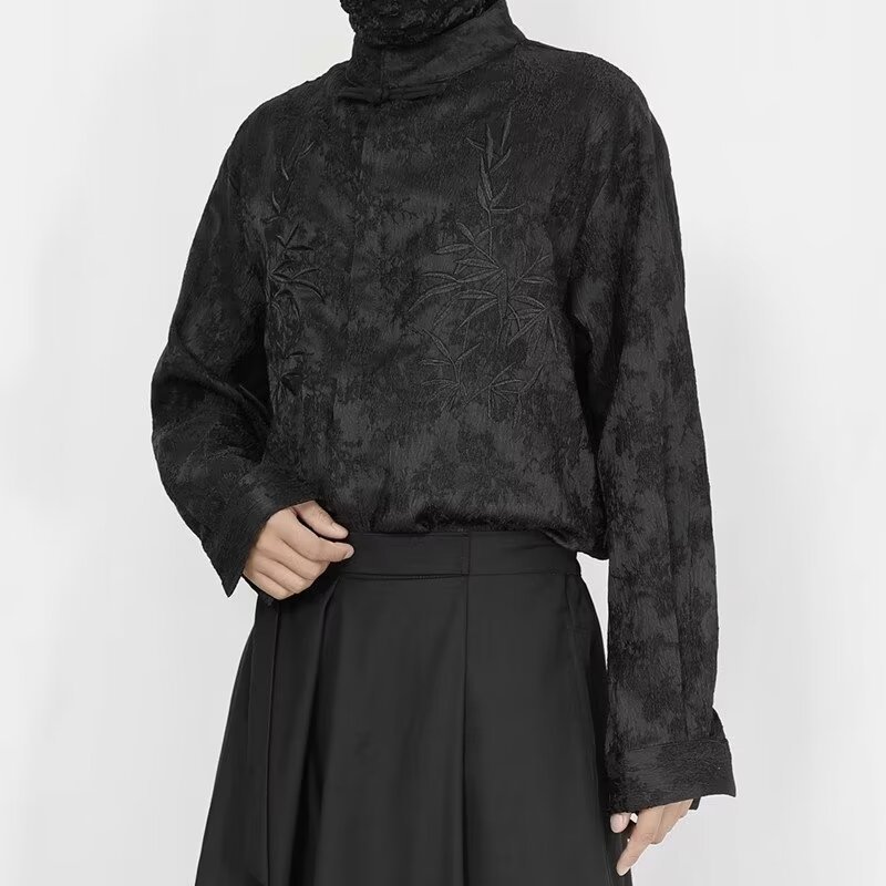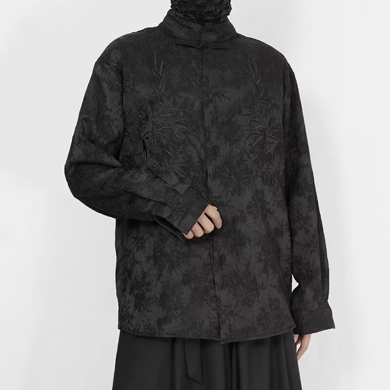 새로운 중국 스타일 내셔널 스타일 자카드 셔츠 남자의 새로운 가을 하이 엔드 스타일 스탠드 칼라 버튼 탑 자수 Duffian 잘 생긴 긴 소매 높은