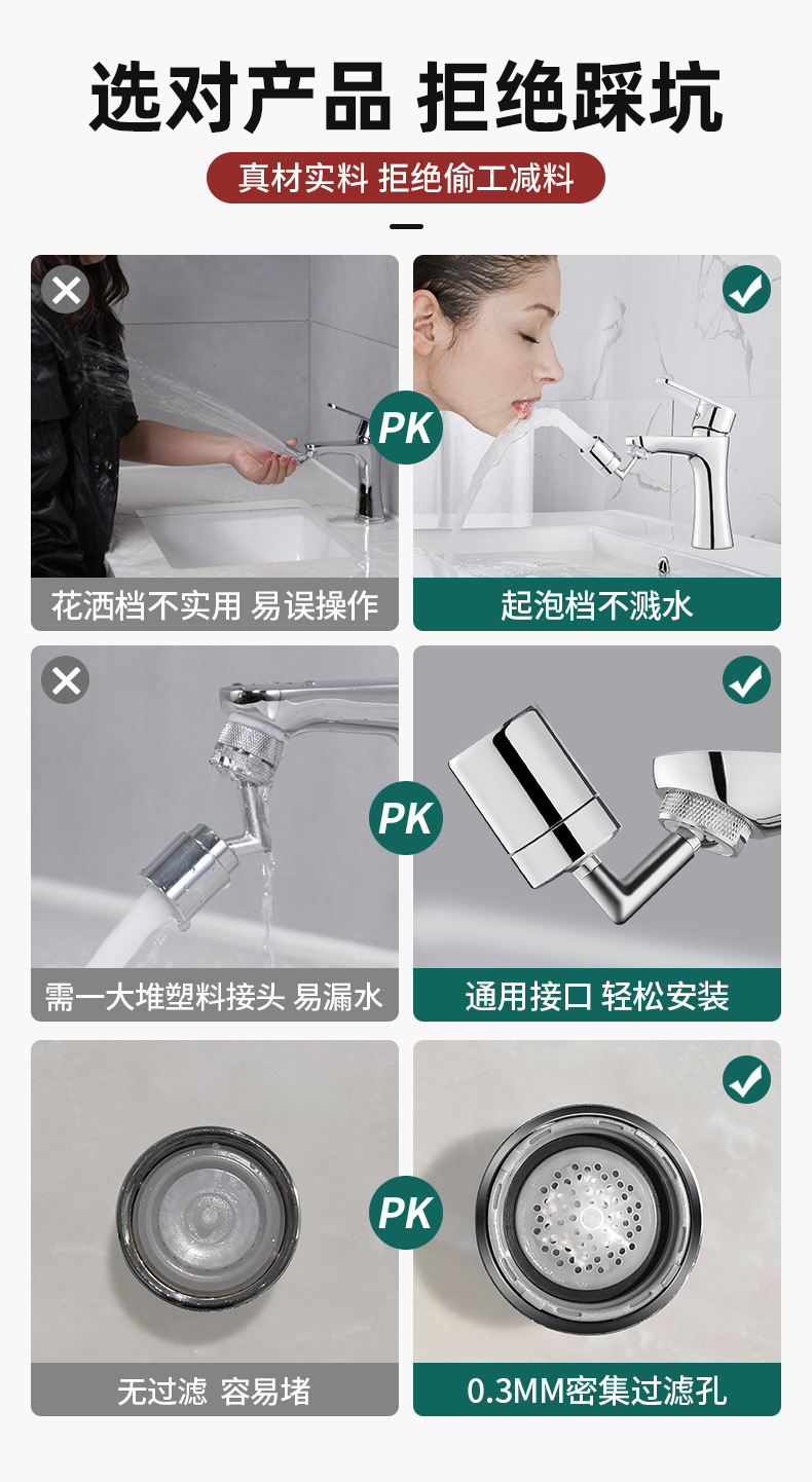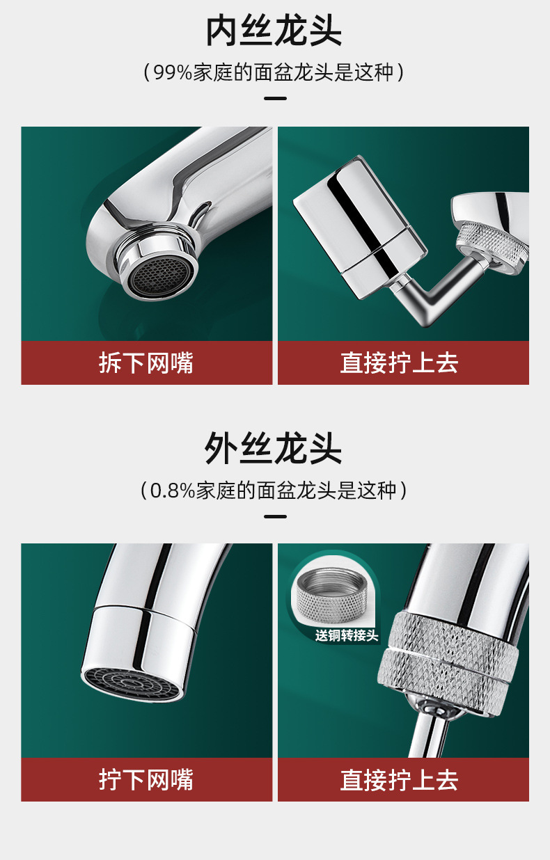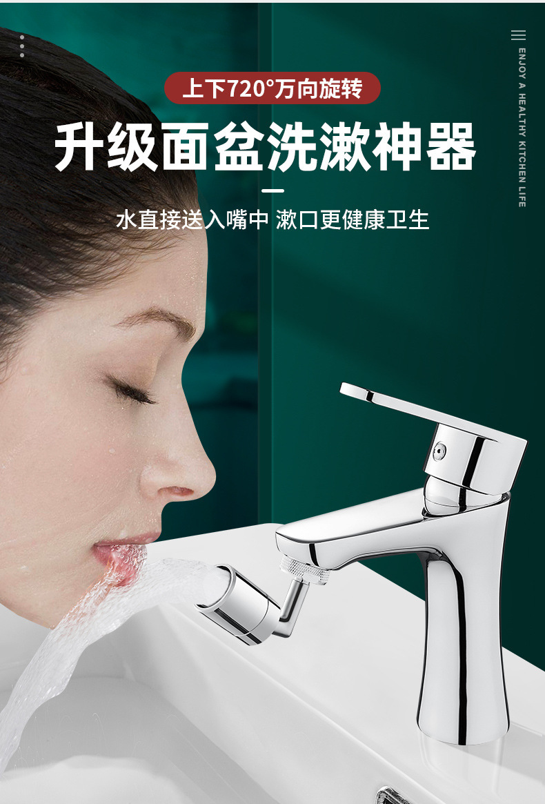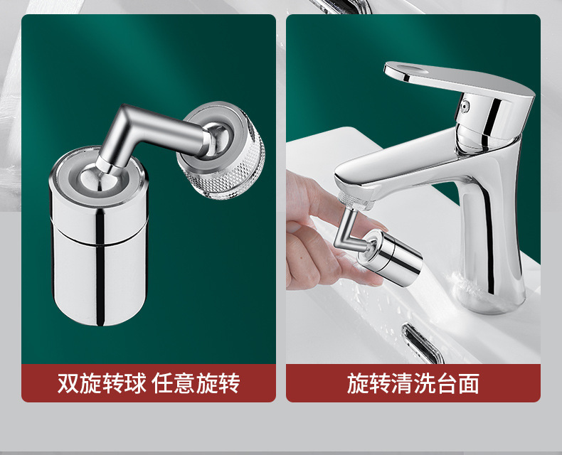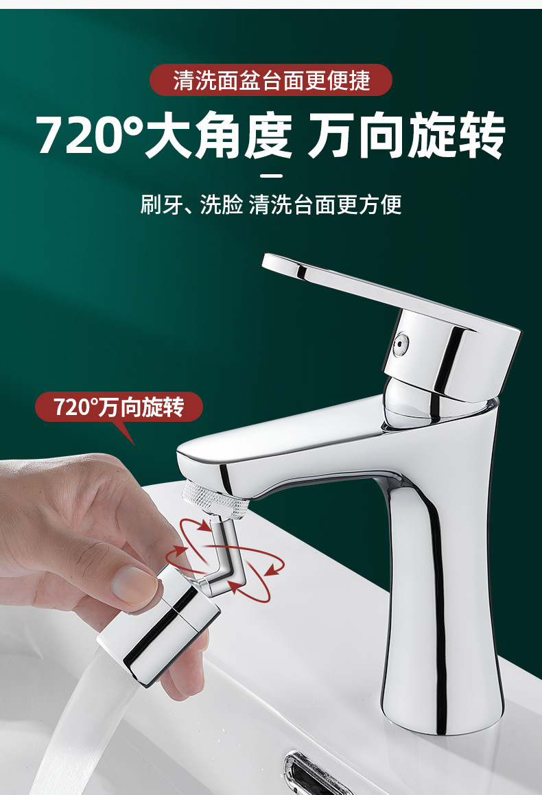 세면기 수도꼭지 720 도 범용 스플래시 헤드 확장 수도꼭지 회전식 노즐 싱글 및 더블 기어 노즐