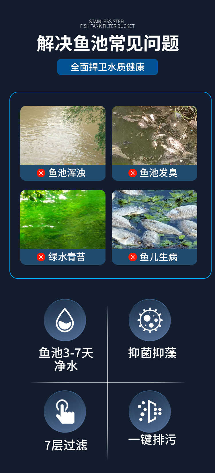 물고기 연못 필터 물 순환 시스템 수영장 필터 정화장치 옥외 물고기 스테인리스 정수 필터 통스토어 가기