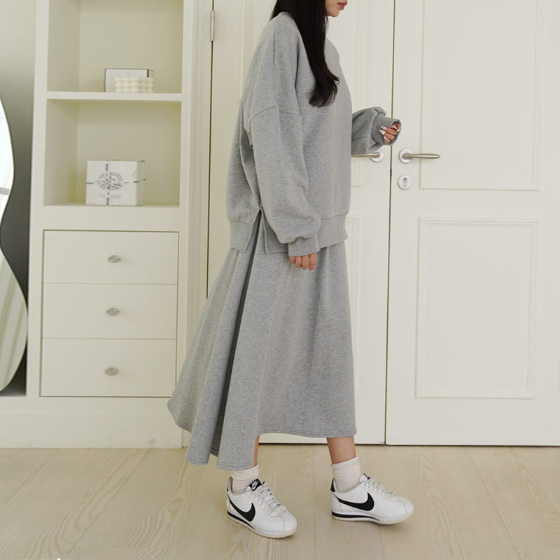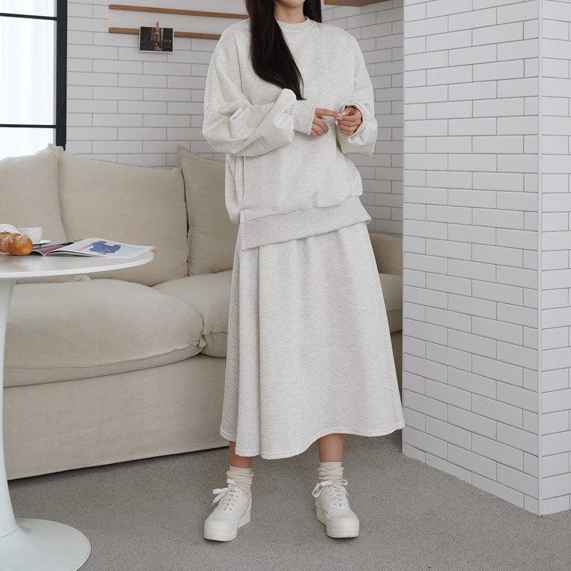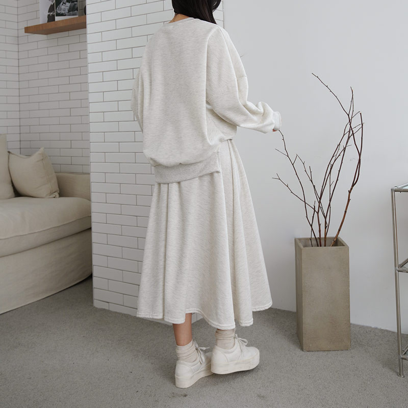 밀크 스타일 착용 가을/겨울 세트 투피스 긴팔 스웻셔츠 탑 여성용 하이 웨이스트 A-라인 스커트 스몰 샤넬 스타일 투피스 세트