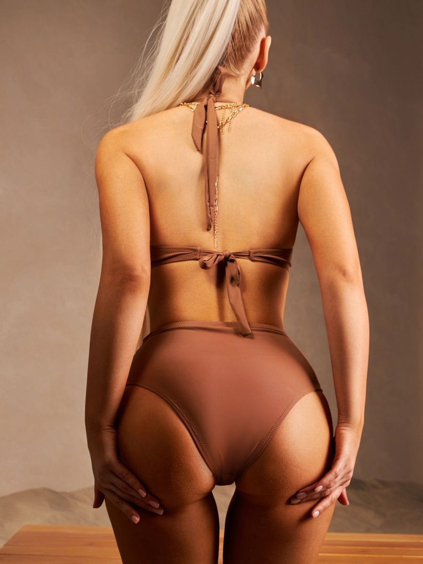 재고 2024 단색 높은 허리 중공 하드 가방 비키니 폭발 수영복 스틸 비키니 B031