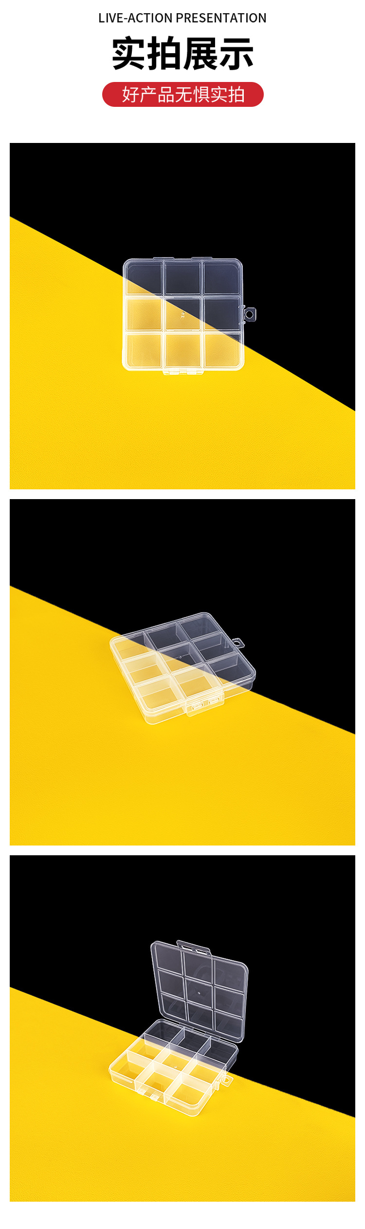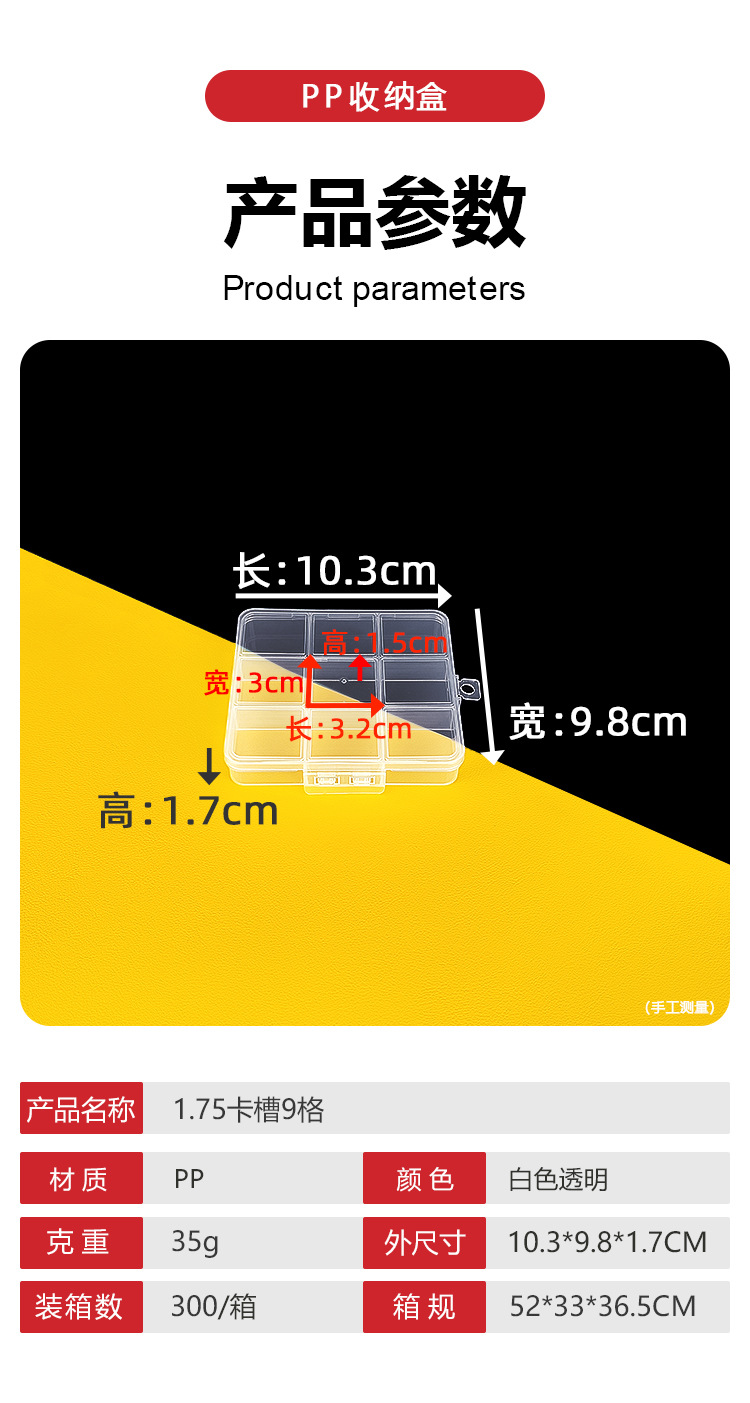 카드 슬롯이있는 9 그리드 고정 투명 pp 보관 상자 DIY 수제 보석 재료 마무리 상자 플라스틱 상자 투명