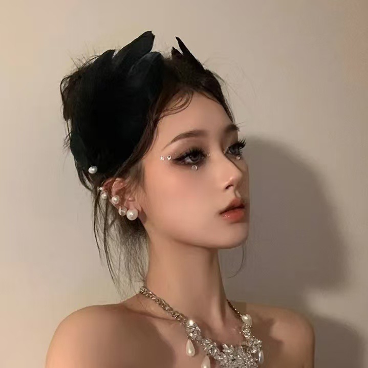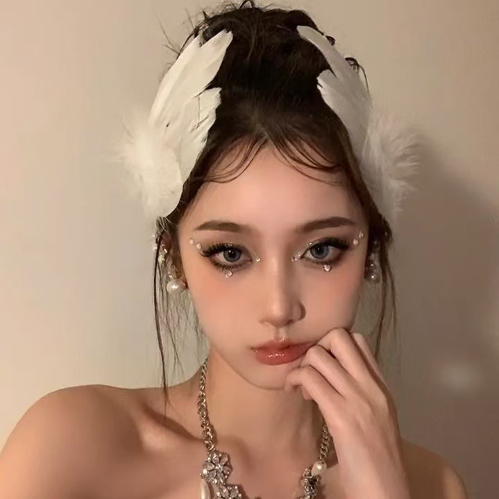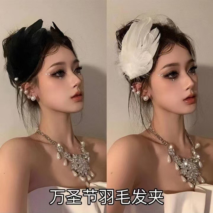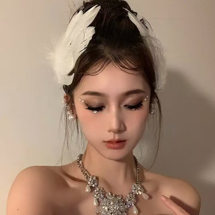 슈퍼 요정 화이트 깃털 진주 머리핀 측면 깨진 머리 앞머리 머리핀 순수 오리 빌 클립 웨딩 원피스 모자 여성스토어 가기