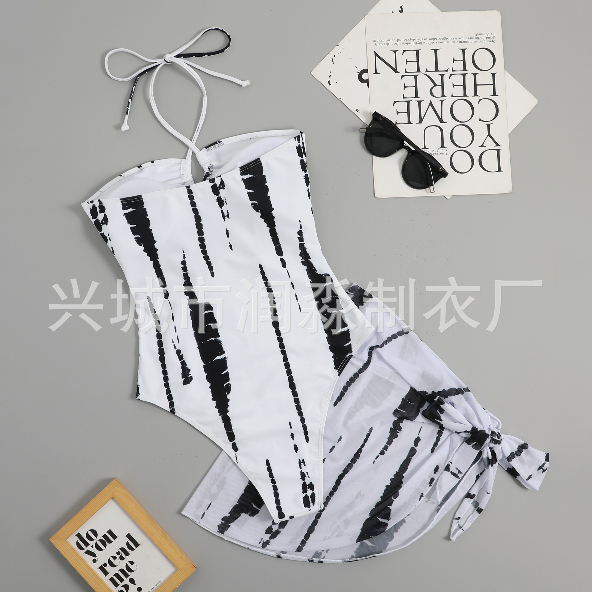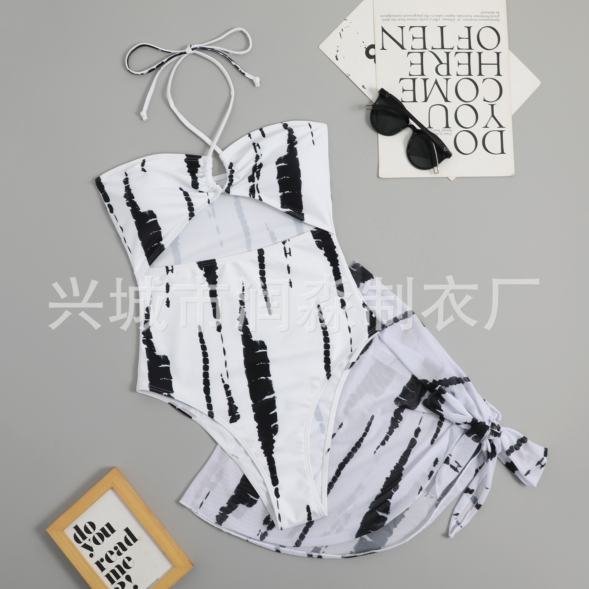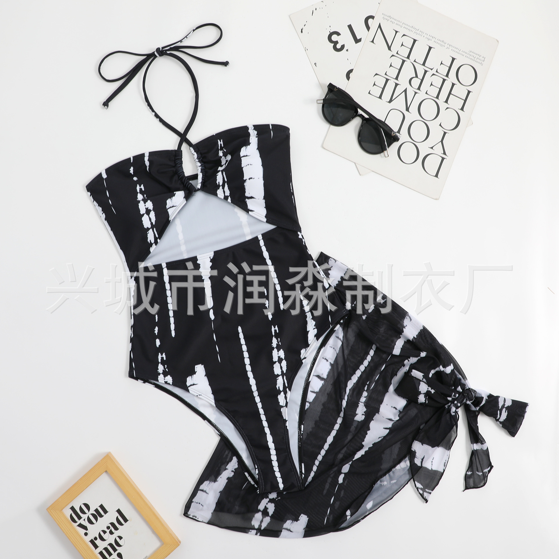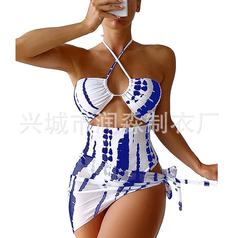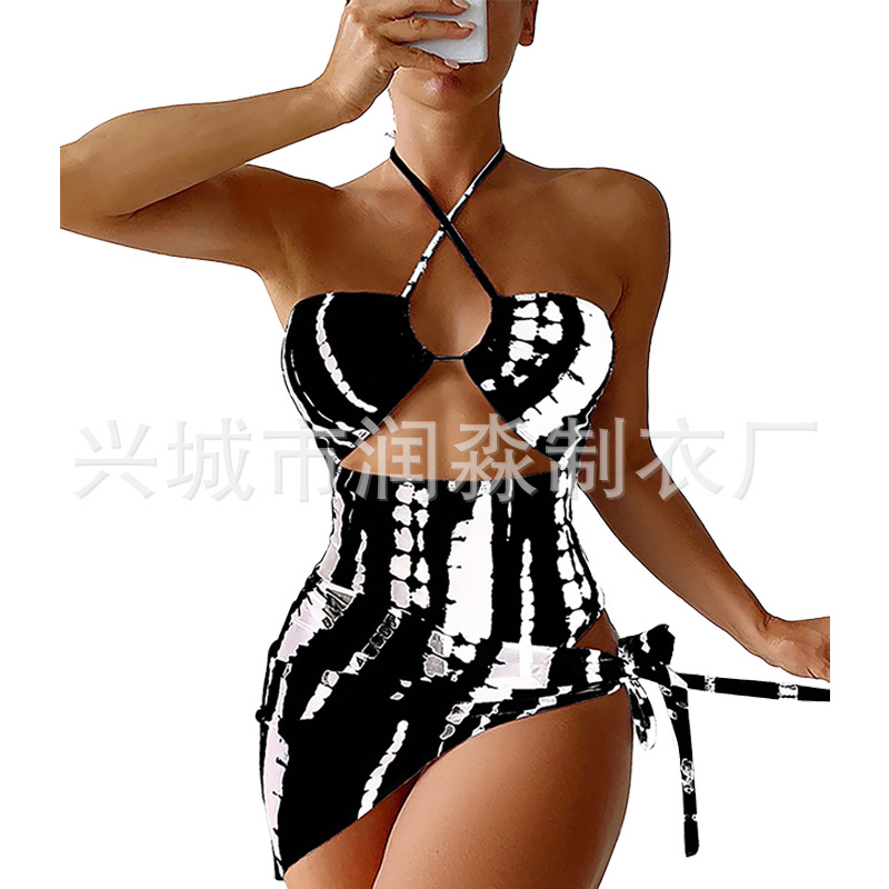 유럽과 미국의 비키니 새로운 섹시한 비키니 수영복 투피스 거즈 스커트 목 단색 수영복 폭발 아마존스토어 가기
