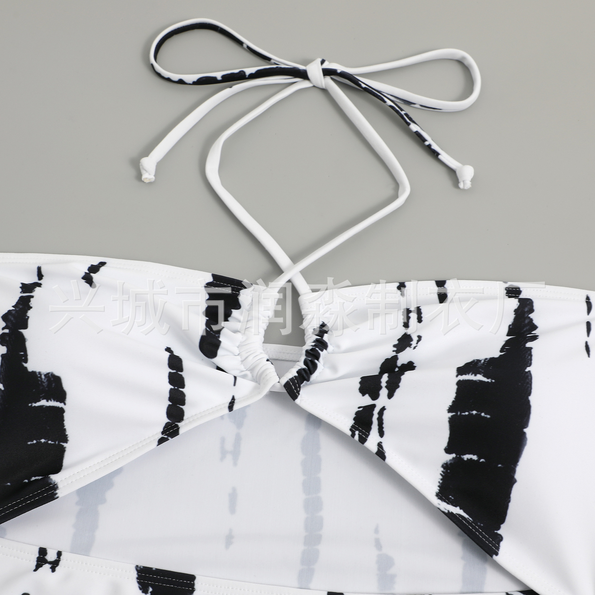 유럽과 미국의 비키니 새로운 섹시한 비키니 수영복 투피스 거즈 스커트 목 단색 수영복 폭발 아마존
