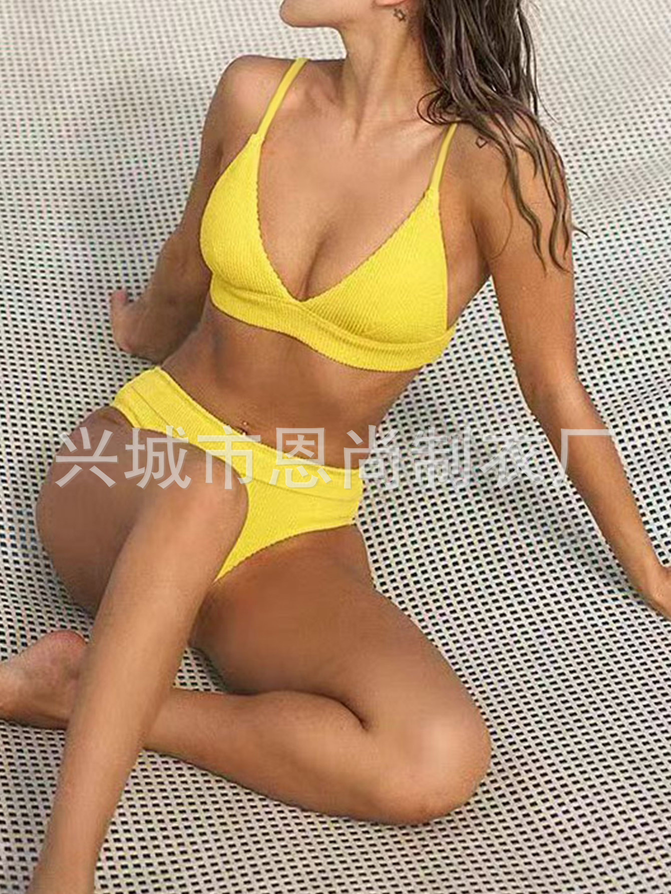2025 새로운 솔리드 컬러 스포츠 조끼 하이 웨이스트 바지 피트니스 유럽과 미국 분할 대외 무역 섹시한 수영복 삼각형 비키니스토어 가기