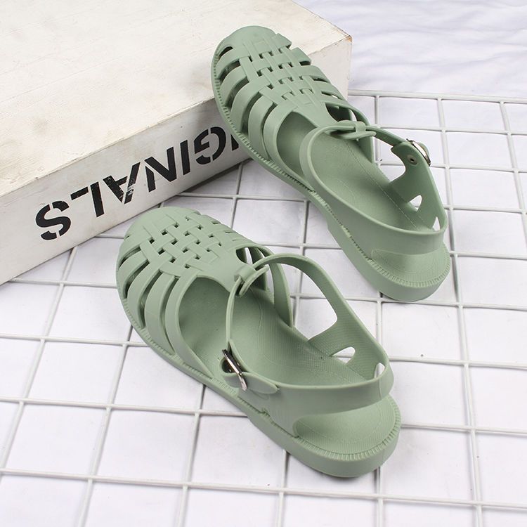 새로운 중공 로마 신발 모든 매치 패션 겉옷 여성 신발 미끄럼 방지 방수 낮은 굽 신발 슬립온 샌들 도매