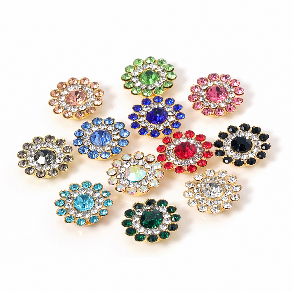 14mm 해바라기 다이아몬드 둥근 꽃 판 다이아몬드 버클 활 수제 DIY 보석 액세서리 3 층 꽃 모조 다이아몬드 도매