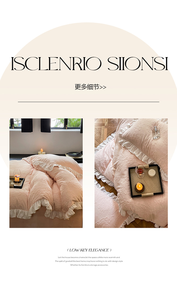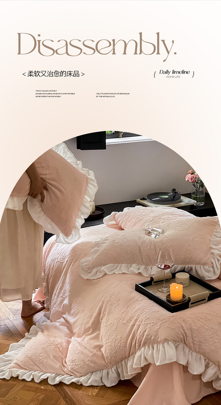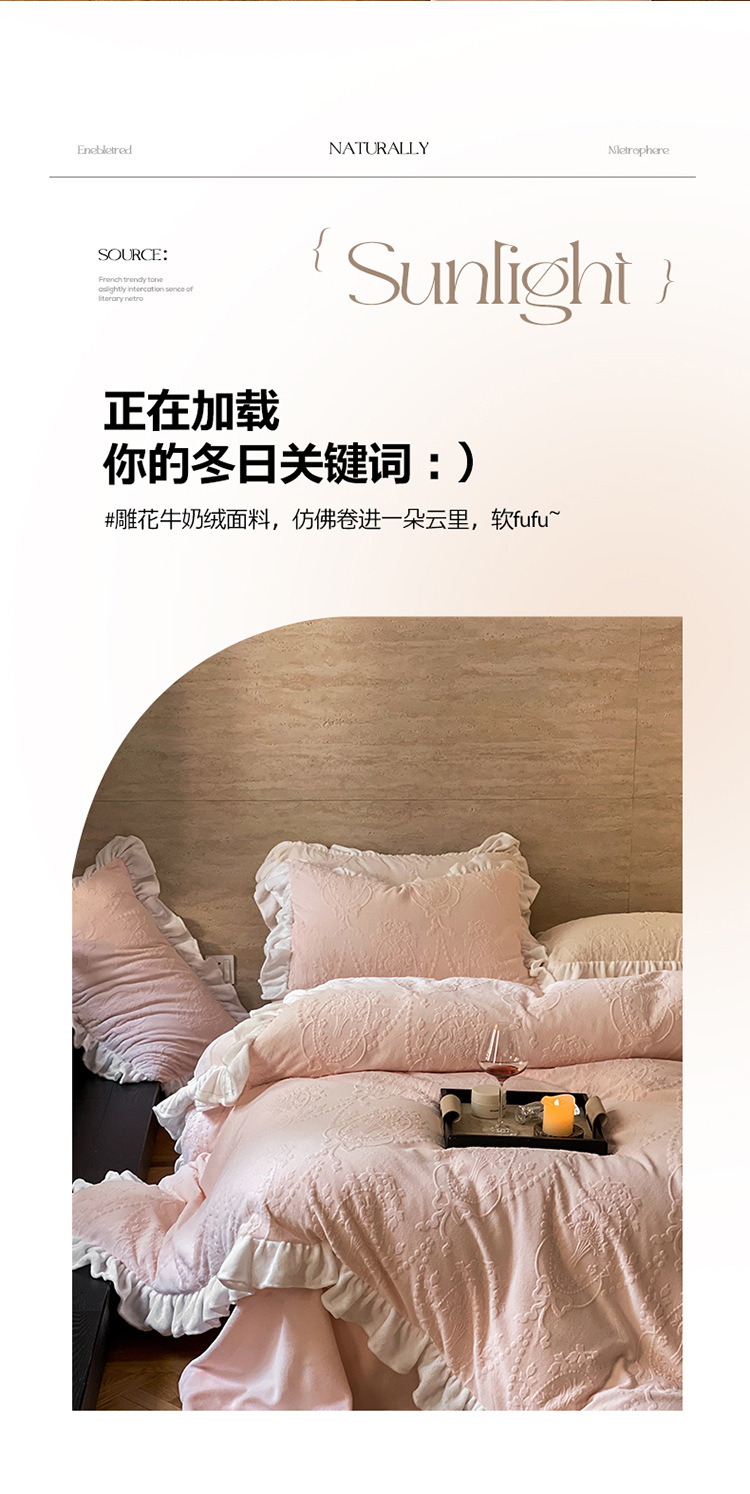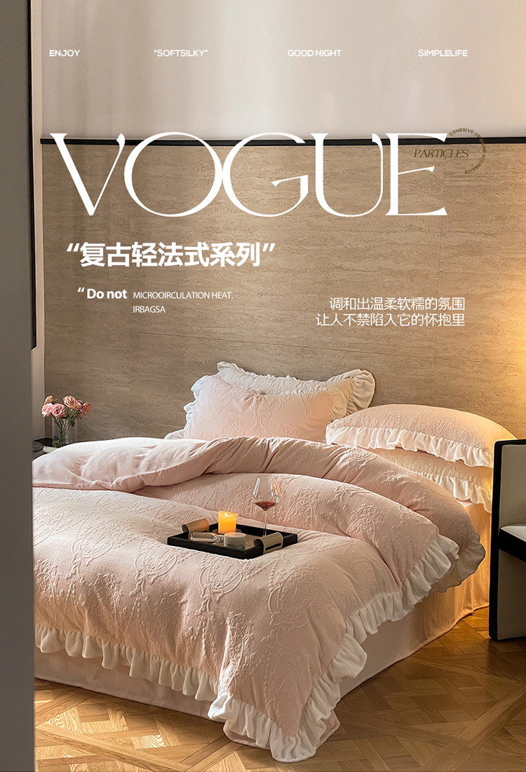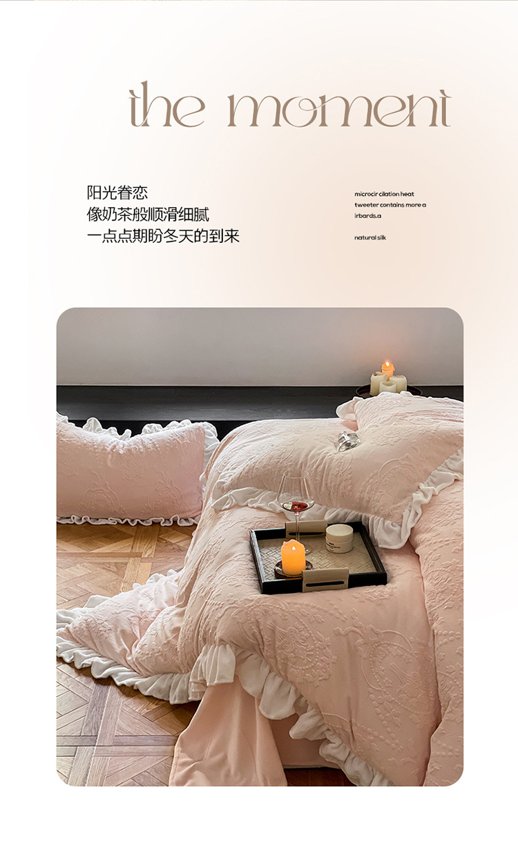 레이스 스타일 밀크 벨벳 4종 세트, 두꺼운 가을 겨울 따뜻한 공주풍 침대 4종 세트, 겨울용 플란넬 세트