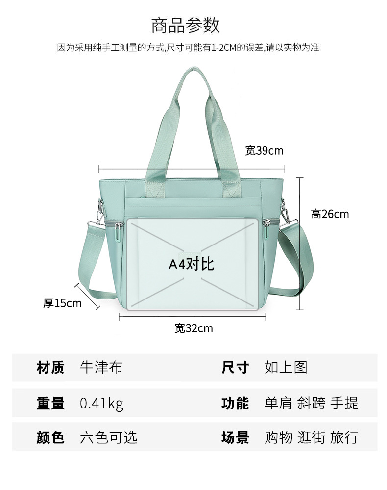 올매치 원숄더백 여성용 2023 년 새로운 패셔너블한 한국식 나일론 대용량 심플 토트백 쇼핑백스토어 가기